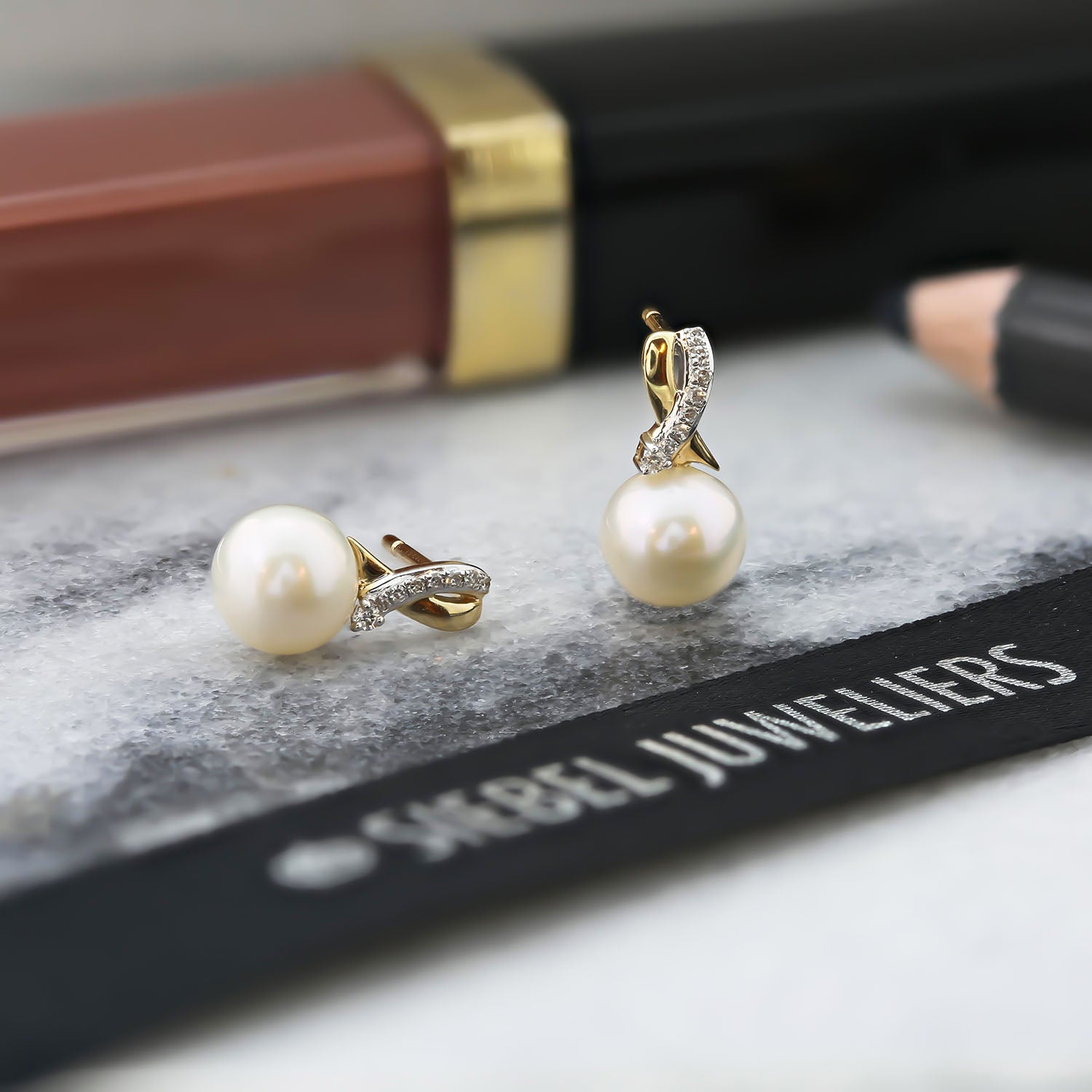 Cercei din aur galben din colectia Diamonds by Siebel. Realizati din aur galben de 14 karate, cerceii prezinta o perla alba rotunda si diamante.