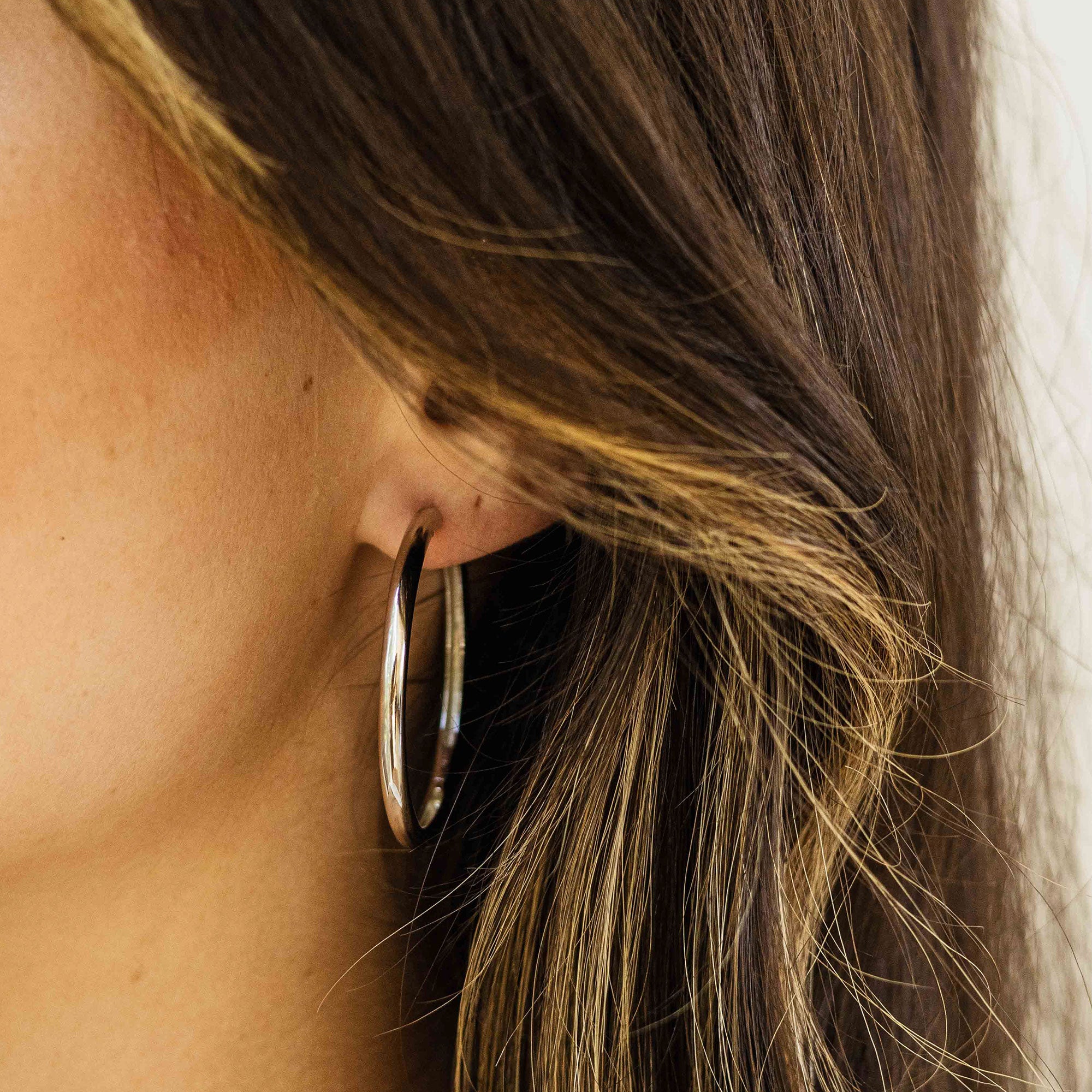 Acesti cercei de baza frumosi de la Favorites sunt fabricati din argint 925 si au o stralucire frumoasa. Cerceii au un diametru de 40 de milimetri, ceea ce ii face perfecti pentru asocierea cu alti cercei. Acest lucru va permite sa va creati cu usurinta propriul aspect personal.