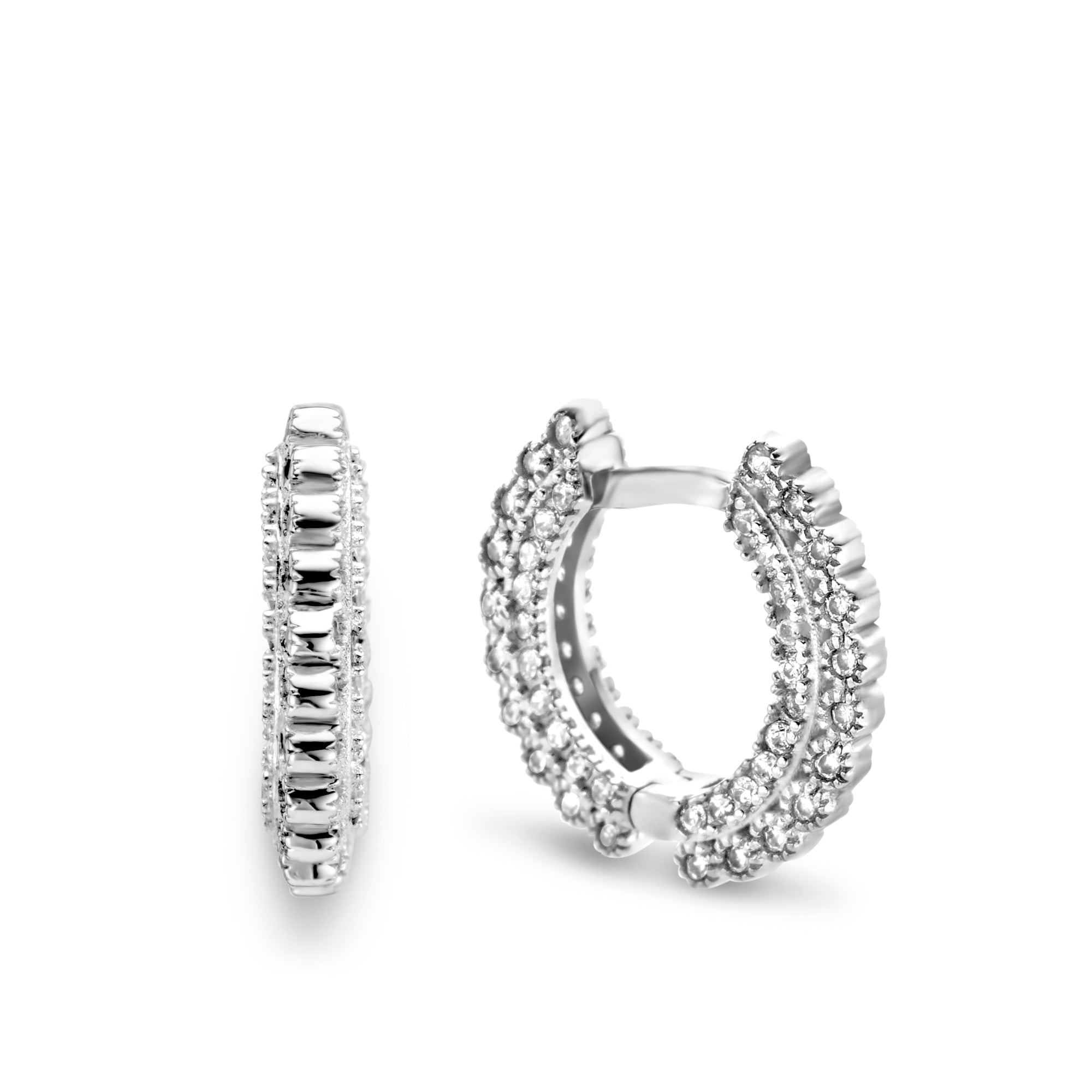 Cercei din argint 925 din colectia Trendy Chic Petit by Siebel. Cerceii se inchid cu o inchizatoare si sunt inserati cu zirconiu. Diametrul fiecarui cercel este de 8 mm.