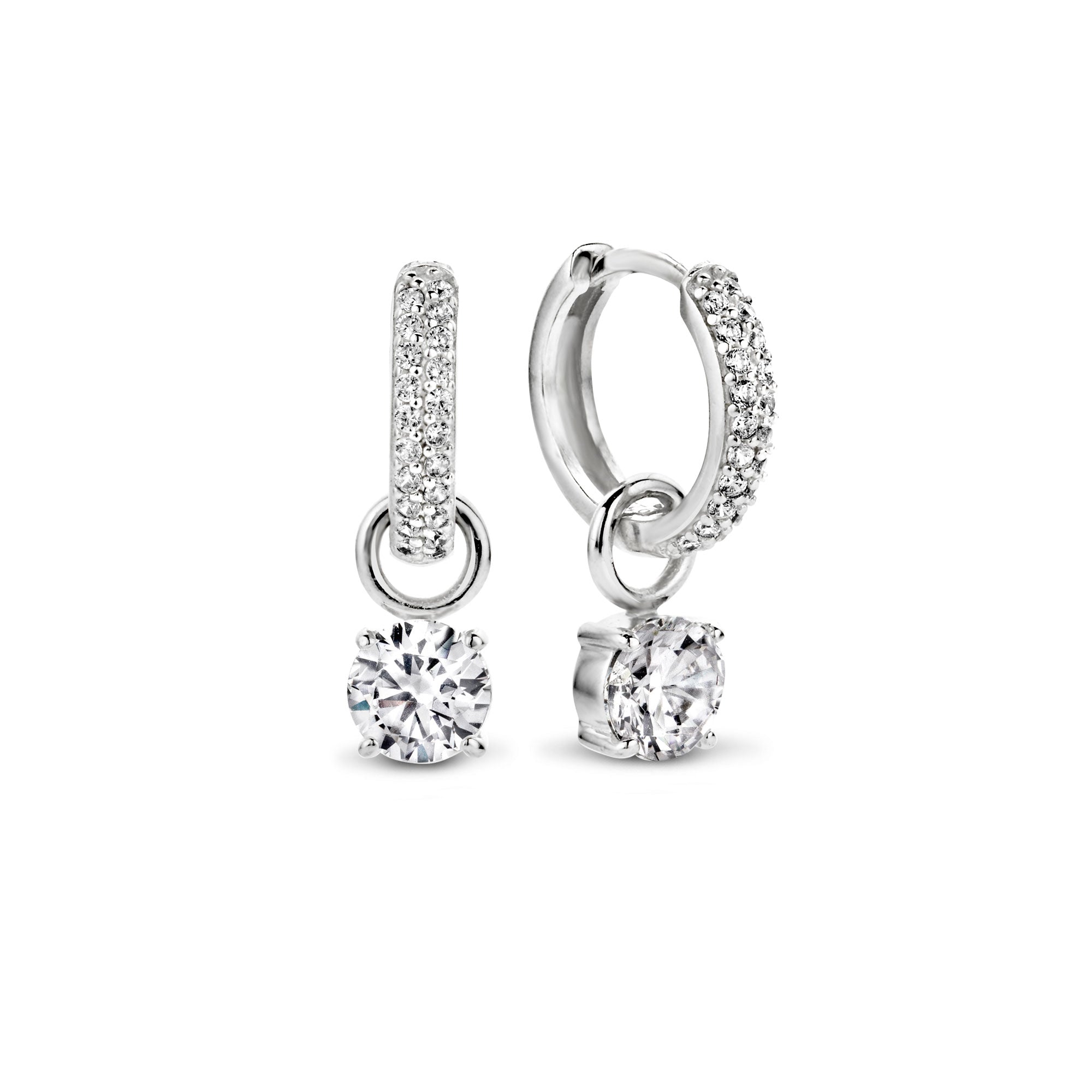 Cercei din argint 925 din colectia Trendy Chic by Siebel. Cerceii sunt complet fixati cu pietre mici de zirconiu si au un diametru de 13 mm. Brelocul pentru urechi este format dintr-o piatra mare de zirconiu de 7 mm. Inclusiv ochiul, dimensiunea totala a farmecului este de 12 mm. Potrivit pentru toate ocaziile, atat festive, cat si pentru uz zilnic.