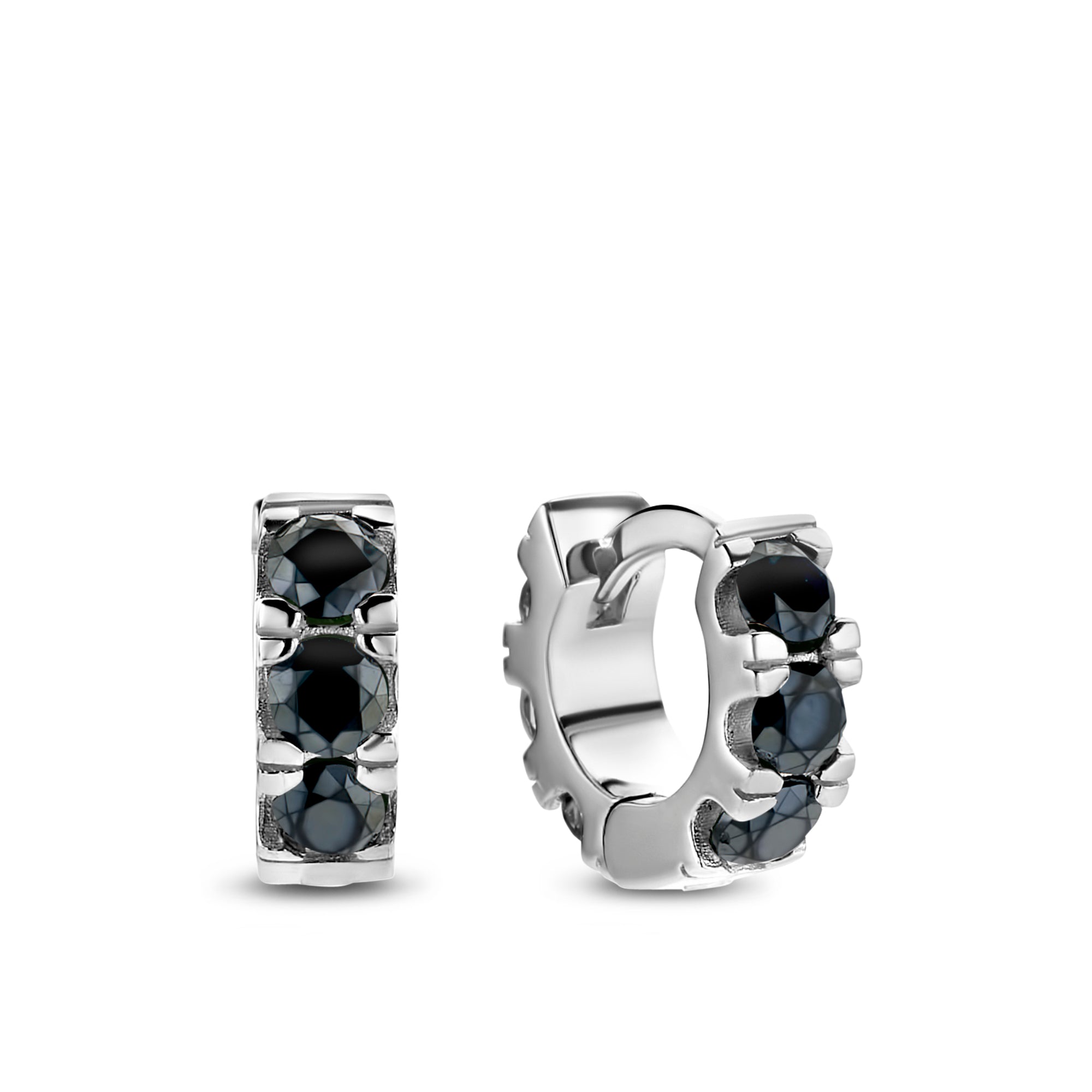 Cercei din argint 925 din colectia Trendy Chic Petit by Siebel. Cerceii se inchid cu o inchizatoare si sunt inserati cu spinel negru. Diametrul fiecarui cercel este de 6,5 mm.