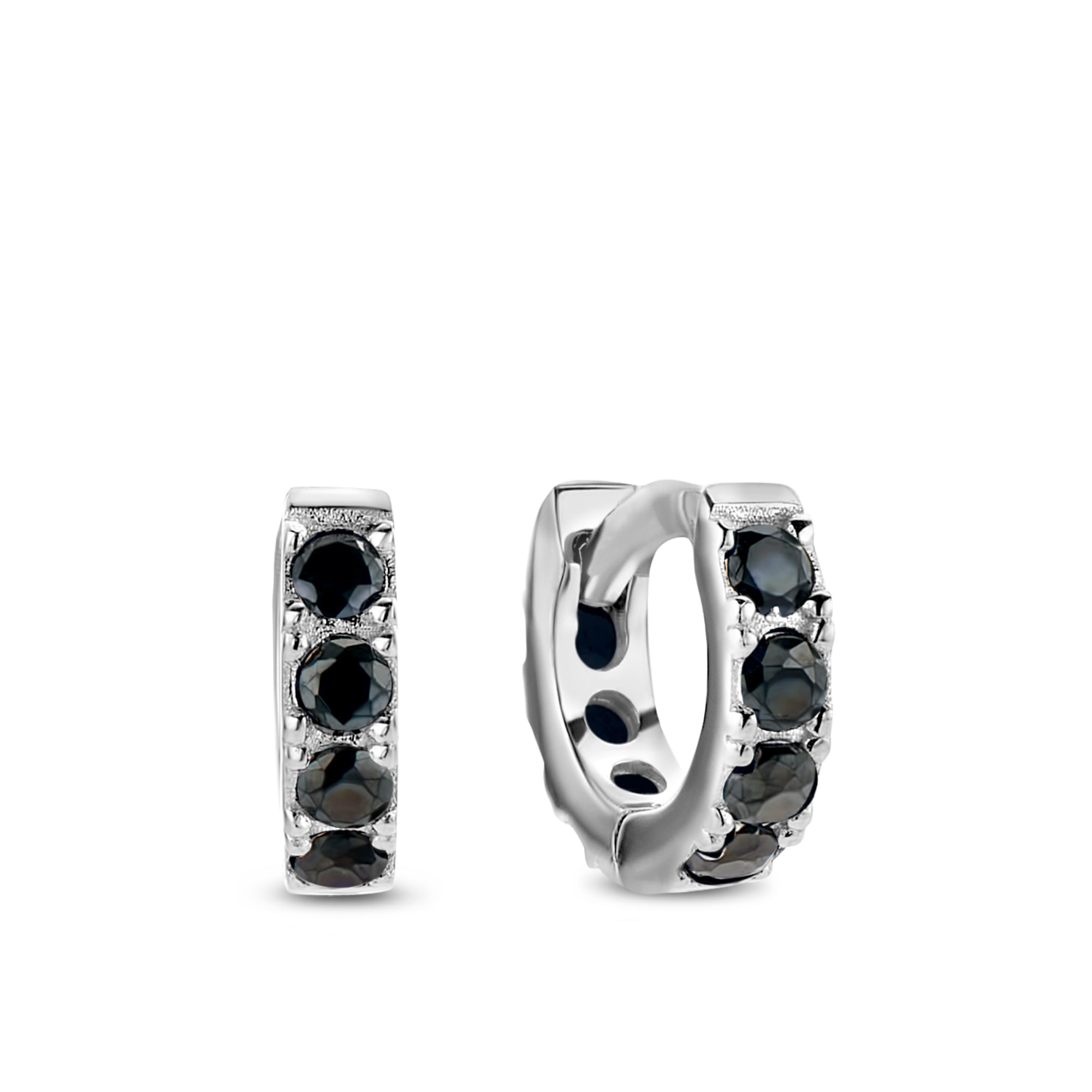 Cercei din argint 925 din colectia Trendy Chic Petit by Siebel. Cerceii se inchid cu o inchizatoare si sunt inserati cu spinel negru. Diametrul fiecarui cercel este de 6,5 mm.