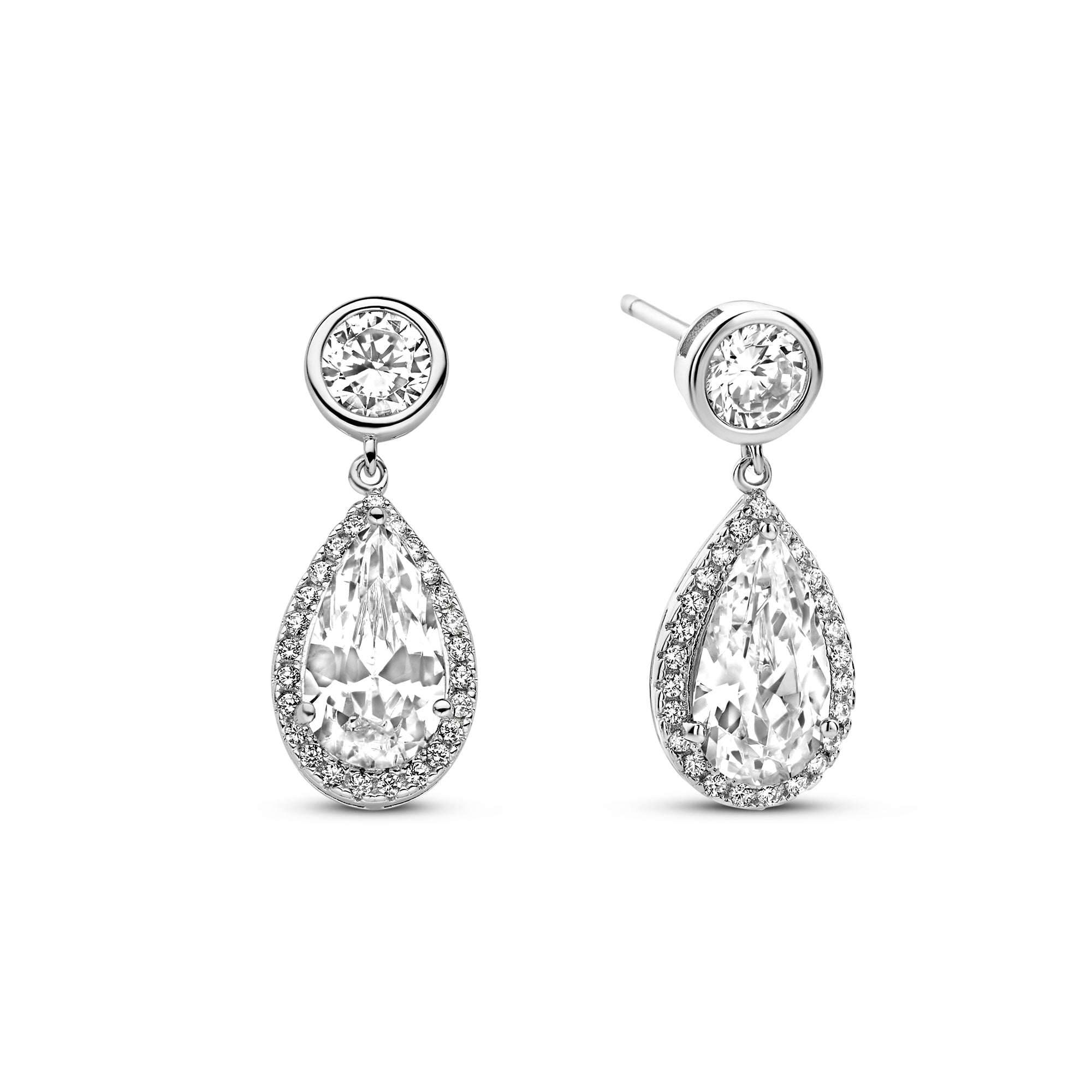 Cercei din argint 925 din colectia Trendy Chic. Cerceii sunt asezati cu 74 de pietre de zirconiu cubic. Zirconia din stift este taiata stralucitor, in timp ce zirconia din pandantiv este in forma de para. Aceasta piesa are un aspect plin de farmec. Imperecheaza cerceii cu alte bijuterii din colectie.