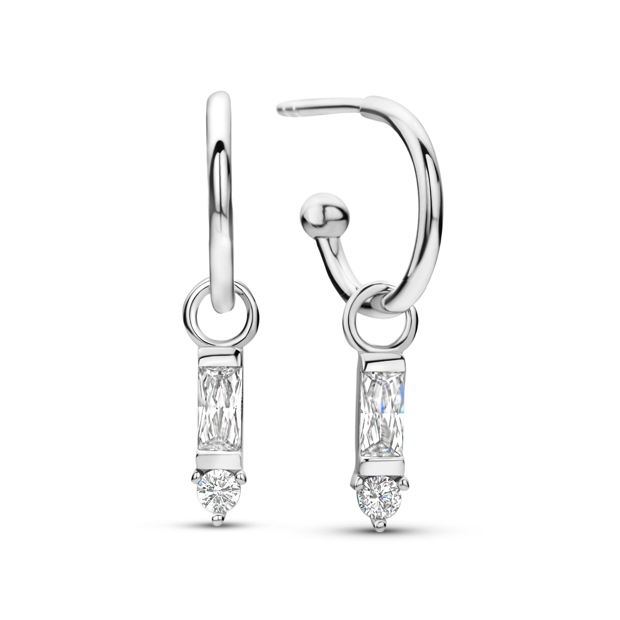 Acesti cercei eleganti de la Trendy Chic Petit sunt confectionati din argint 925 si sunt placati cu rodiu. Cerceii din argint au diametrul de 12 mm. Fiecare cercel are un set de breloc de 11 mm cu zirconiu. Amesteca si potriveste bijuterii Trendy Chic Petit pentru un look complet!