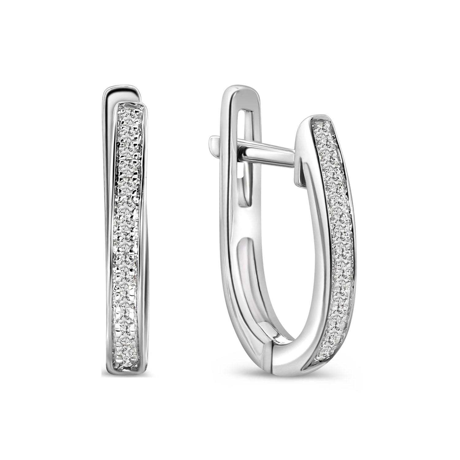 Cercei din aur alb din colectia Diamonds by Siebel. Confectionati din aur alb de 14 karate, acesti cercei sunt inscrisi cu 32 de diamante stralucitoare. Poarta-le cu bijuterii asortate din colectie pentru a completa look-ul.