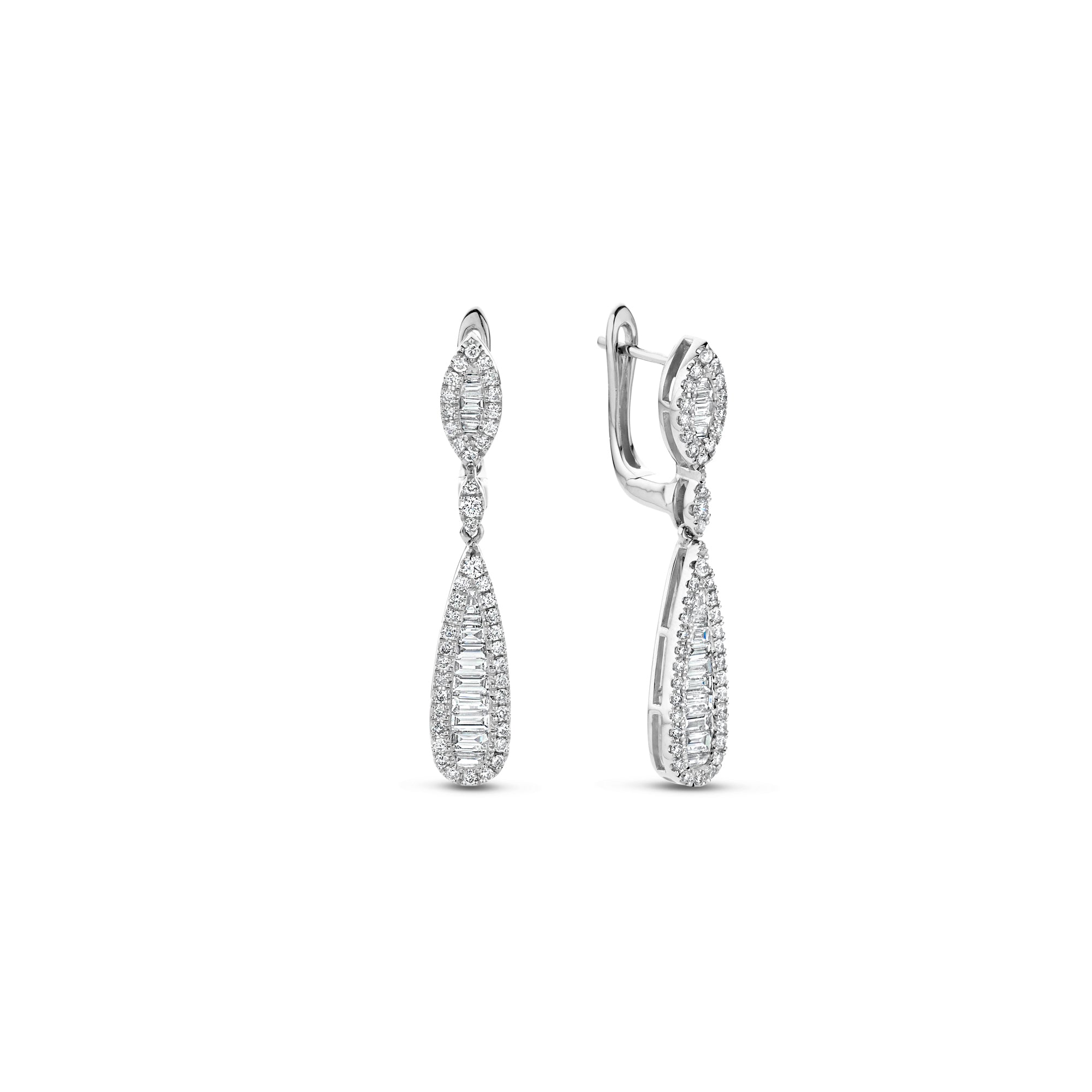 Cercei din aur alb cu bagheta si diamante taiate stralucitor in forma geometrica. Total 0,97 ct.