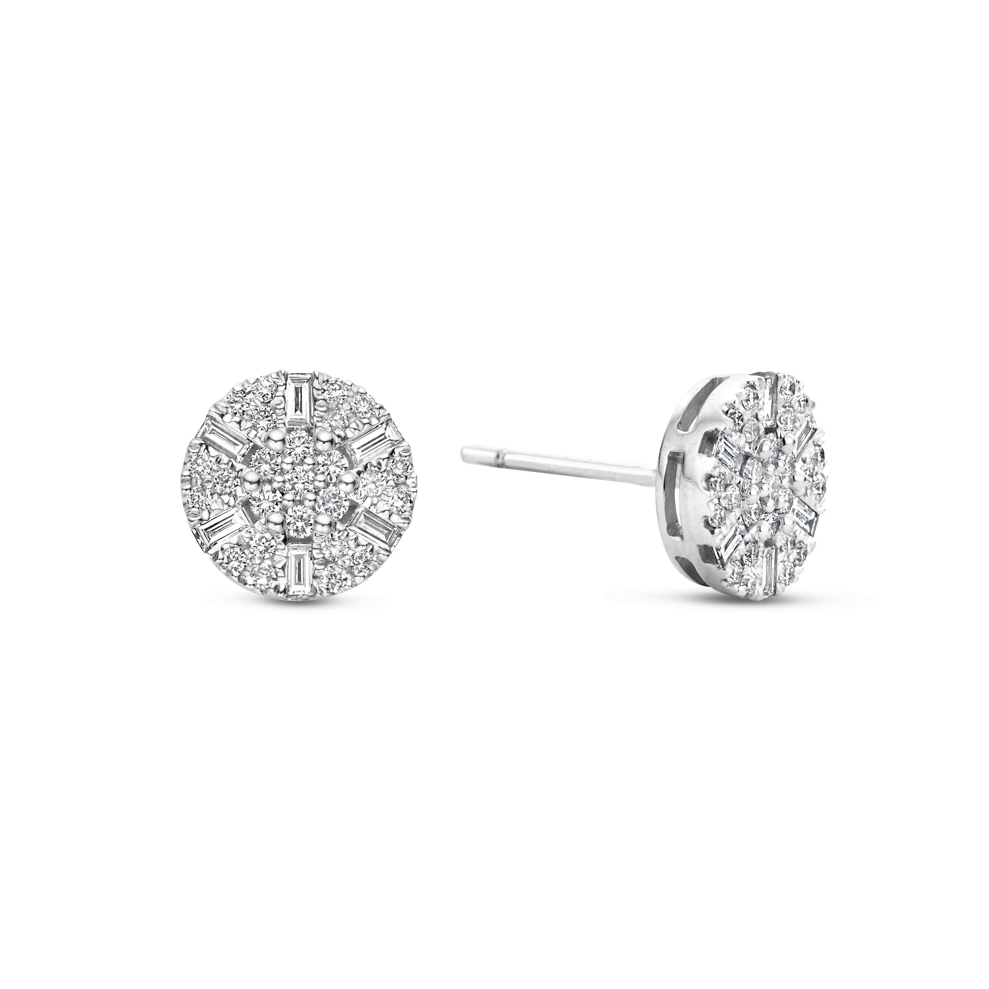 Cercei din aur alb cu diamante taiate stralucitor si bagheta in valoare totala de 0,49 ct.