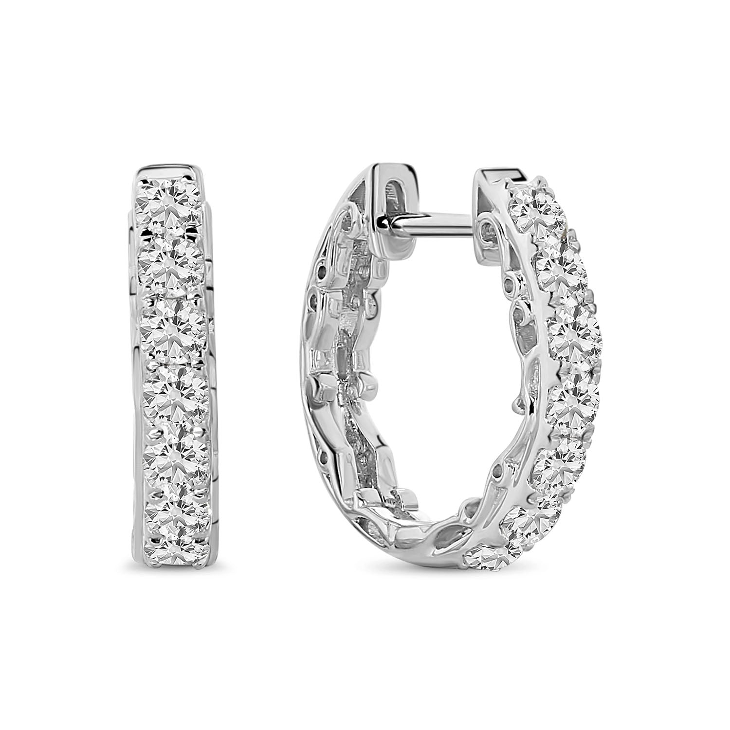 Cercei din aur alb cu diamante cultivate in laborator din colectia Millennium. Confectionati din aur alb de 14 karate, acesti cercei sunt impodobiti cu 14 diamante albe uimitoare, cultivate in laborator, taiate stralucitor. Asociati-le cu inelul asortat din colectie pentru a va completa look-ul.
