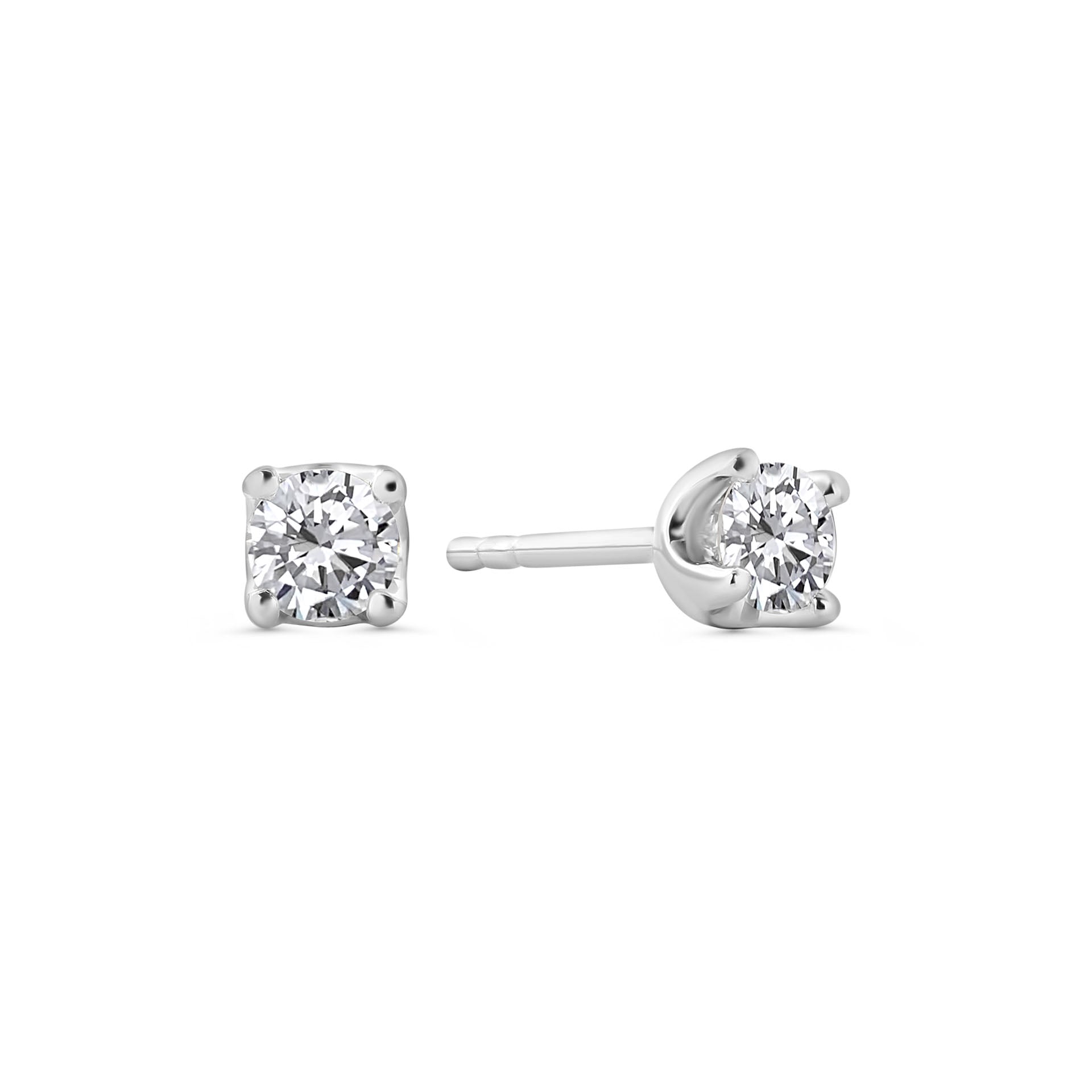 Acesti cercei cu stifturi din aur alb de 14 karate sunt din colectia noastra Millennium. Sunt sertate cu diamante cultivate in laborator. Pietrele albe au un finisaj lustruit.