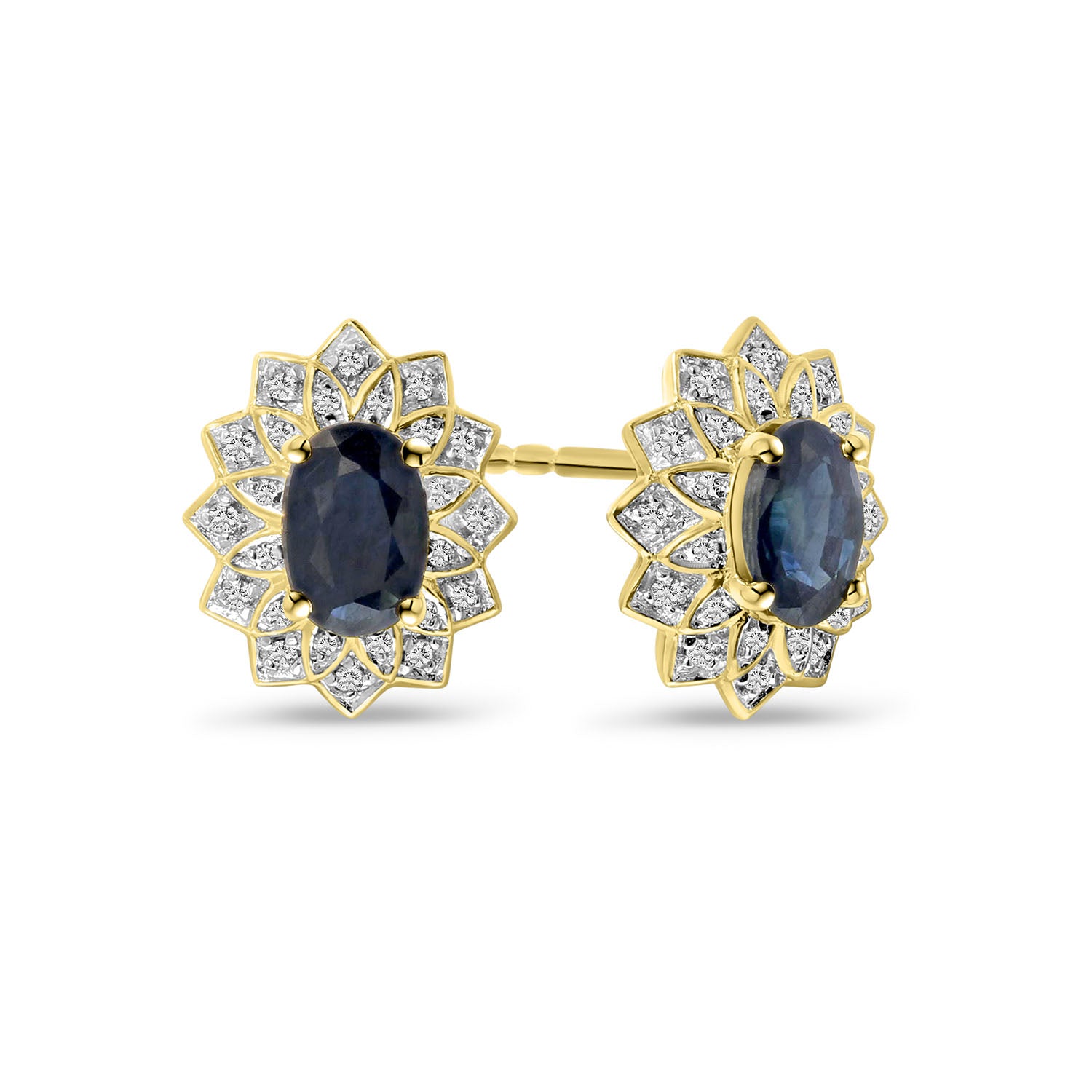 Cercei stud din aur galben cu safire si diamante din colectia Gems. Realizati din aur galben de 14 karate, acesti cercei prezinta safire taiate oval si diamante taiate stralucitor. Asociati acesti cercei cu alte piese de bijuterii din colectie.
