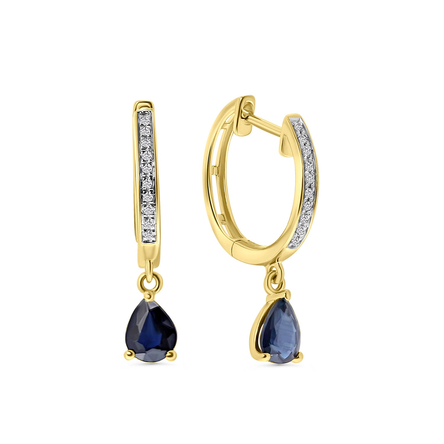 Cercei din aur galben cu safir si diamante din colectia Gems. Realizati din aur galben de 14 karate, acesti cercei prezinta un frumos safir in forma de para si diamante taiate stralucitor. Cerceii au 13 mm diametru si 20 mm inaltime, inclusiv pandantivul. Asociati acesti cercei cu alte bijuterii din colectie.