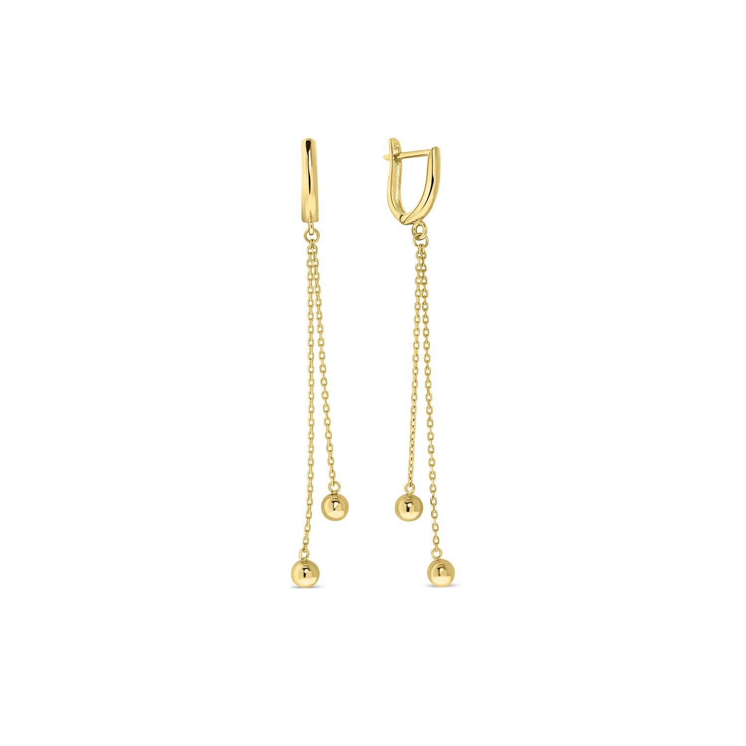 Cercei din aur galben din colectia Gold by Siebel. Realizati din aur galben de 14 karate, cerceii au un pandantiv frumos format din doua lungimi de lant cu margele taiate cu diamant.