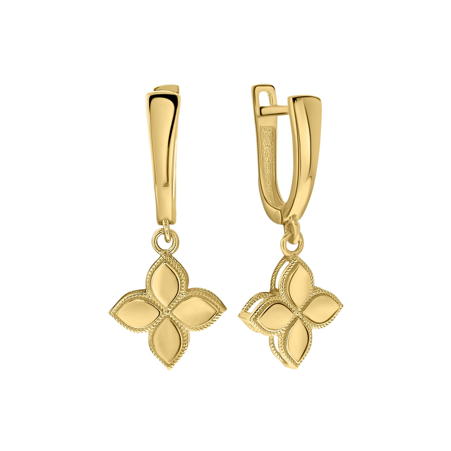 Acesti cercei din aur galben de la Gold by Siebel sunt o oda catre eleganta feminina, cu un design gratios de trifoi care danseaza subtil inainte si inapoi cu fiecare miscare. Fabricate din aur de 14 karate, capteaza lumina bland si calduros. Finisajul detaliat din jurul petalelor confera designului un aspect rafinat. O piesa captivanta care imbunatateste fara efort orice aspect!