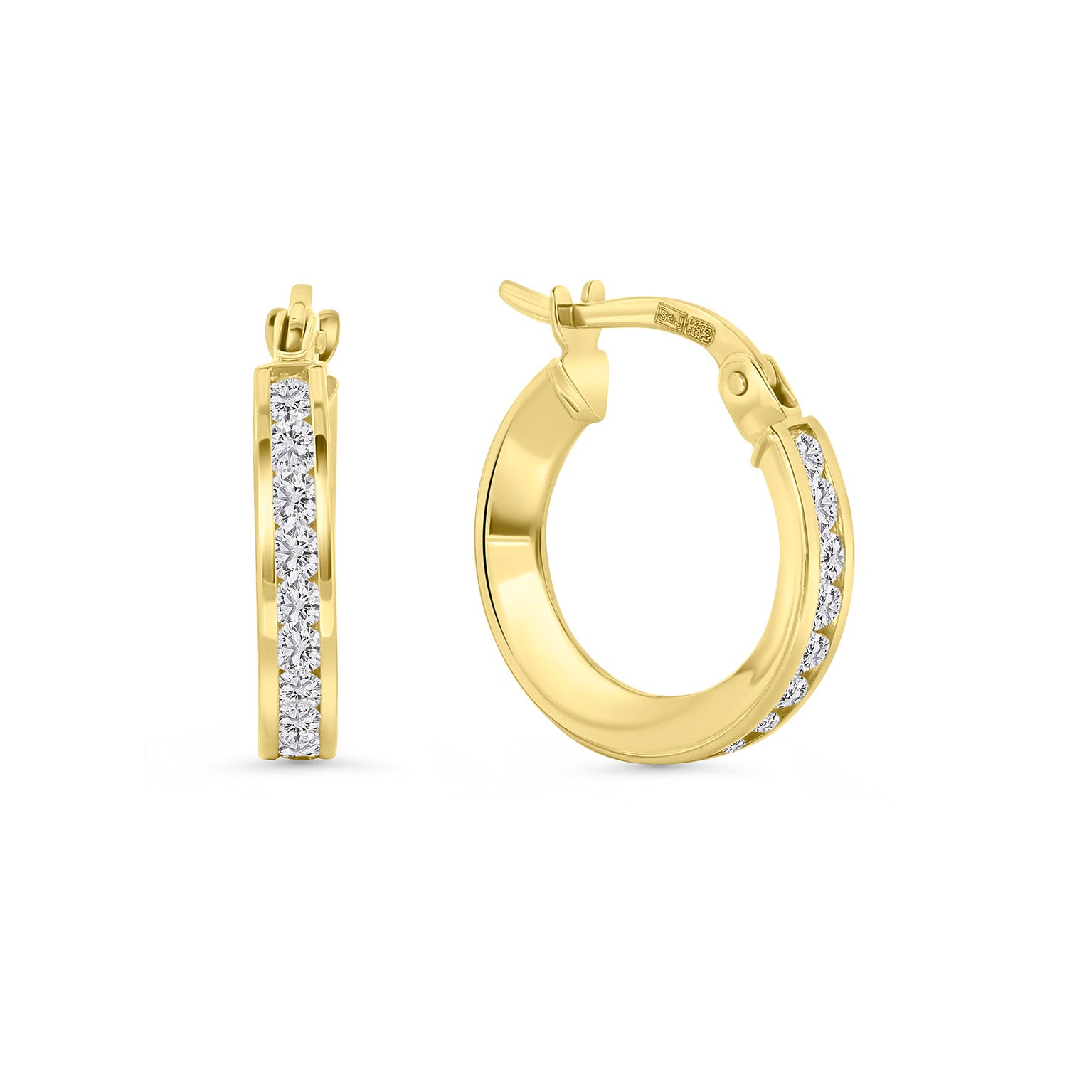Cercei din aur galben din colectia Gold by Siebel. Acesti cercei din aur galben sunt confectionati din aur galben de 14 karate si impodobiti cu 38 de pietre de zirconiu stralucitoare. Asociati acesti cercei cu alte bijuterii din colectie.