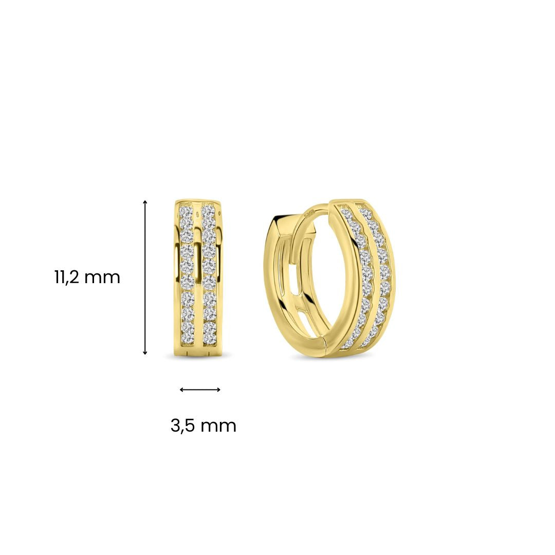 Cercei din aur galben cu zirconiu din colectia Gold by Siebel. Realizati din aur galben de 14 karate, acesti cercei au doua randuri de pietre de zirconiu stralucitoare. Au o inchizatoare pentru a pune si a dezlipi usor. Asociati acesti cercei cu alte bijuterii din colectie pentru a va completa look-ul.