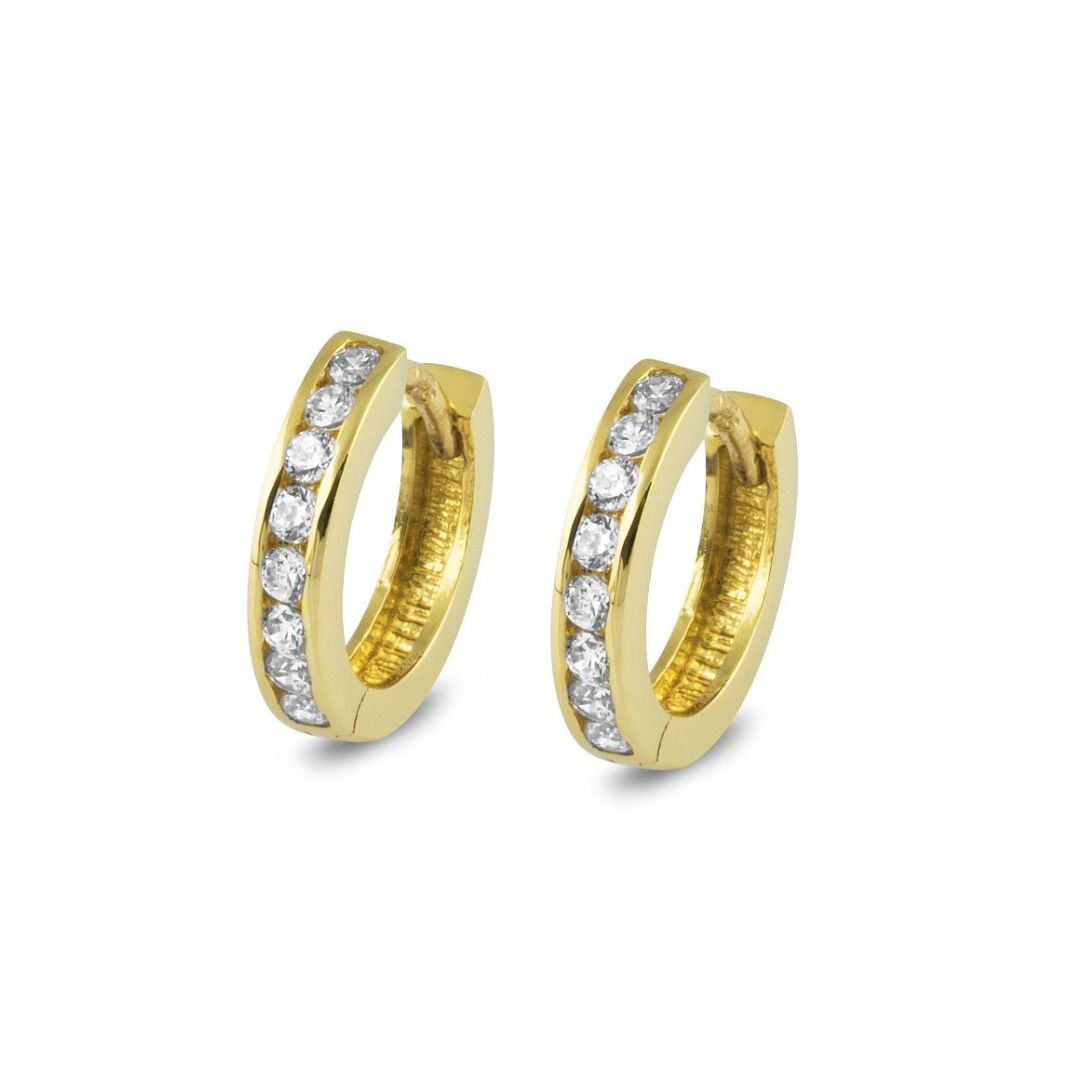 Cercei din aur din colectia Gold by Siebel seti cu zirconiu. Cerceii au un diametru de 11 mm.