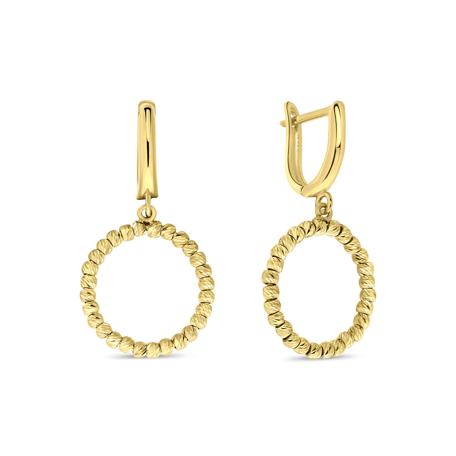 Cercei din aur galben din colectia Gold by Siebel. Realizati din aur galben de 14 karate, acesti cercei sunt decorati cu margele rotunde. Margelele au un finisaj placat cu diamant.