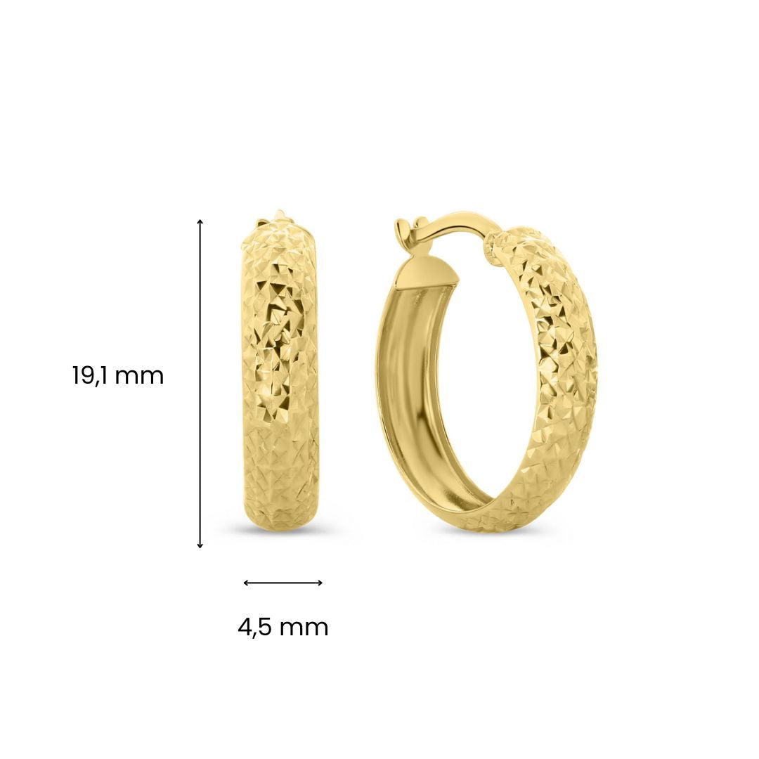 Cercei din aur galben incrustati cu diamante din colectia Gold by Siebel. Realizati din aur galben de 14 karate, acesti cercei au un aspect incrustat cu diamante. Combina-le cu alte bijuterii din colectie pentru a-ti completa look-ul.