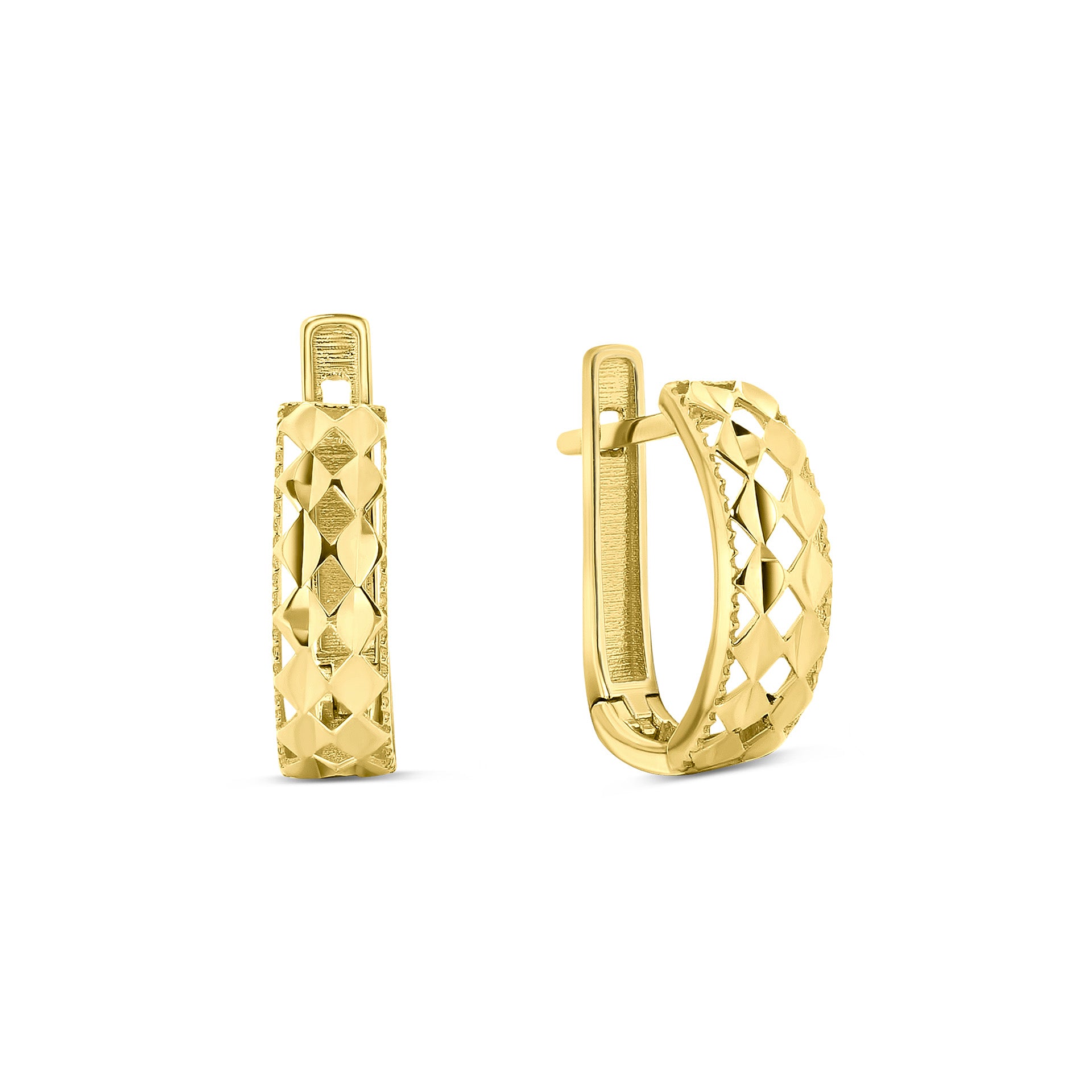 Cercei din aur galben din colectia Gold by Siebel. Acesti cercei sunt confectionati din aur galben de 14 karate si au un design taiat cu diamant. Combina acesti cercei cu alte bijuterii din colectie.