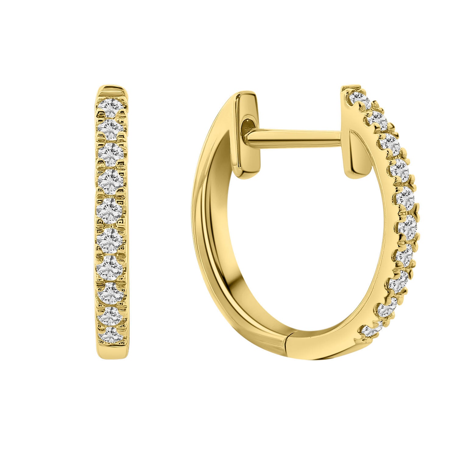 Cercei din aur galben cu diamante din colectia Memoire. Confectionati din aur galben de 14 karate, acesti cercei sunt impodobiti cu 20 de diamante uimitoare taiate stralucitor. Asociati-le cu alte bijuterii din colectie.