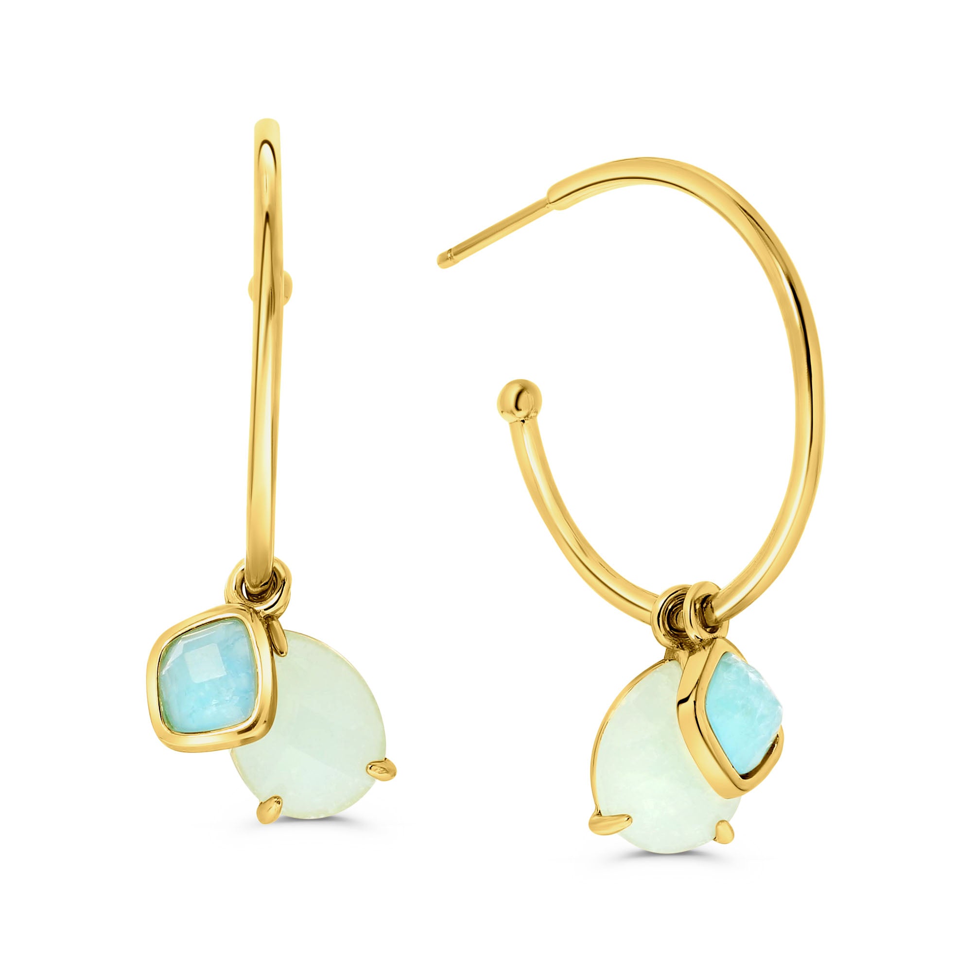 Acesti frumosi cercei Salvatore Plata din colectia Druse sunt lucrati din argint 925 si sunt placati cu aur. Cerceii prezinta frumoase cristale taiate cabochon, verzi si albastre. Cerceii au un diametru de 2,5 cm. Amestecati si potriviti bijuteriile pentru a va crea propriul aspect unic!