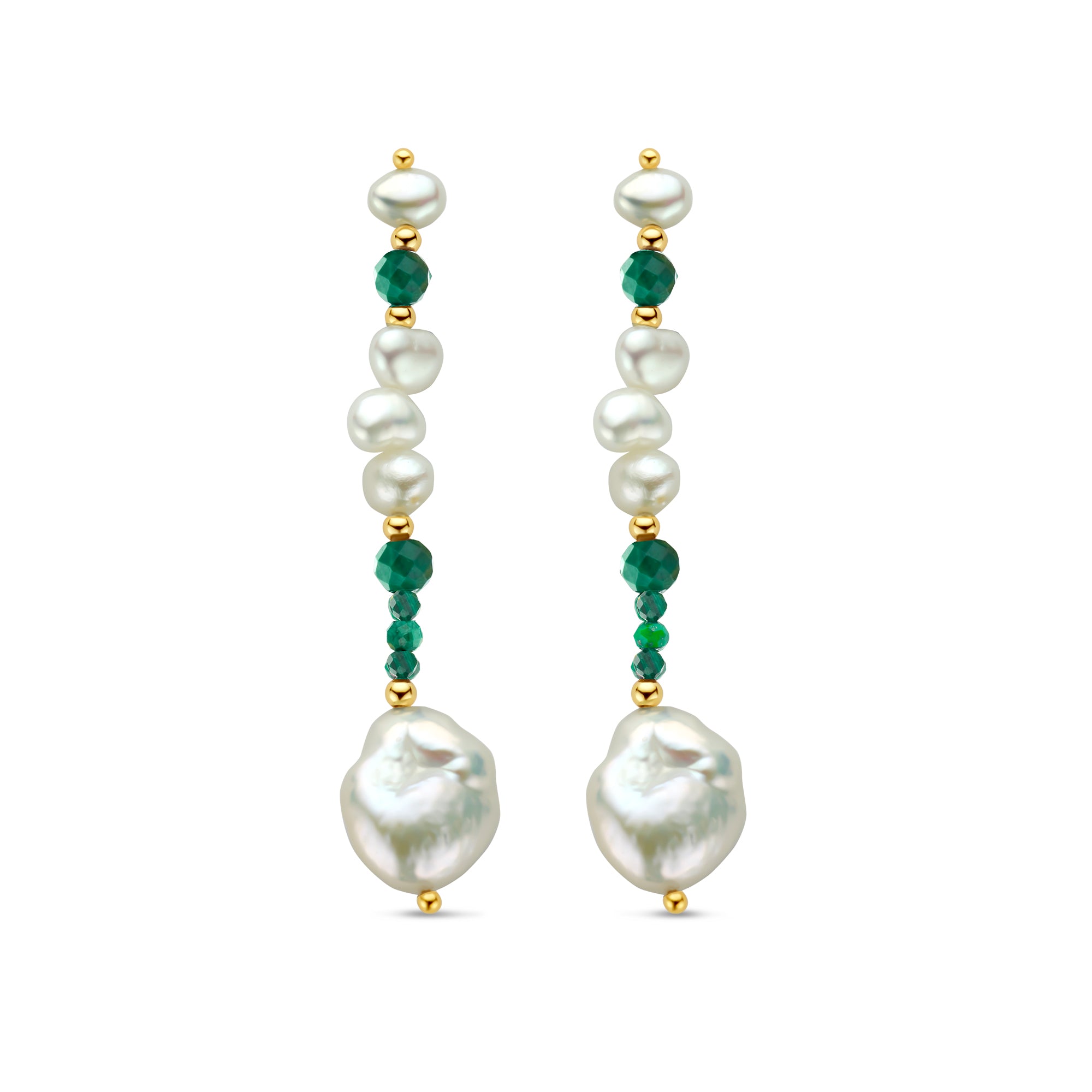 Acesti cercei frumosi de Salvatore Plata sunt lucrati din argint 925 si finisati cu placare cu aur. Margelele mici sunt facute din malachit si perle. Cerceii au un aspect jucaus si sunt usor de combinat cu alte bijuterii din colectie.