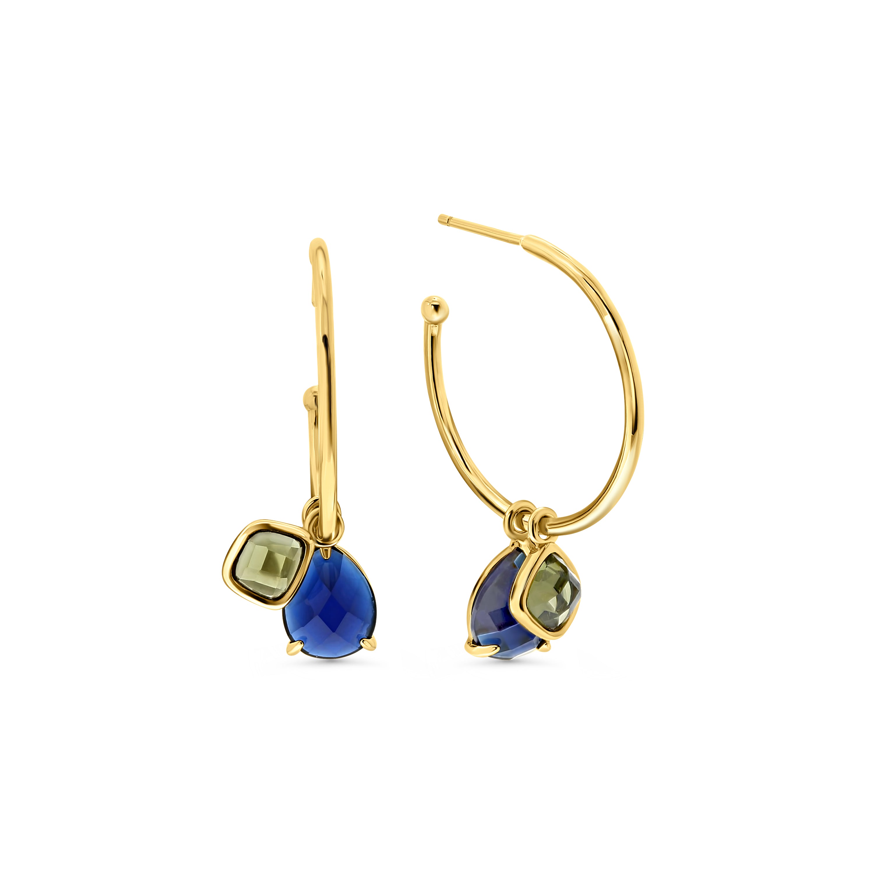 Acesti cercei frumosi Salvatore Plata sunt lucrati din argint 925 si sunt placati cu aur. Acestea prezinta uimitoare cristale taiate albastru inchis si albastru. Cerceii au un diametru de 2,5 cm. Amestecati si potriviti bijuteriile pentru a va crea propriul aspect unic!