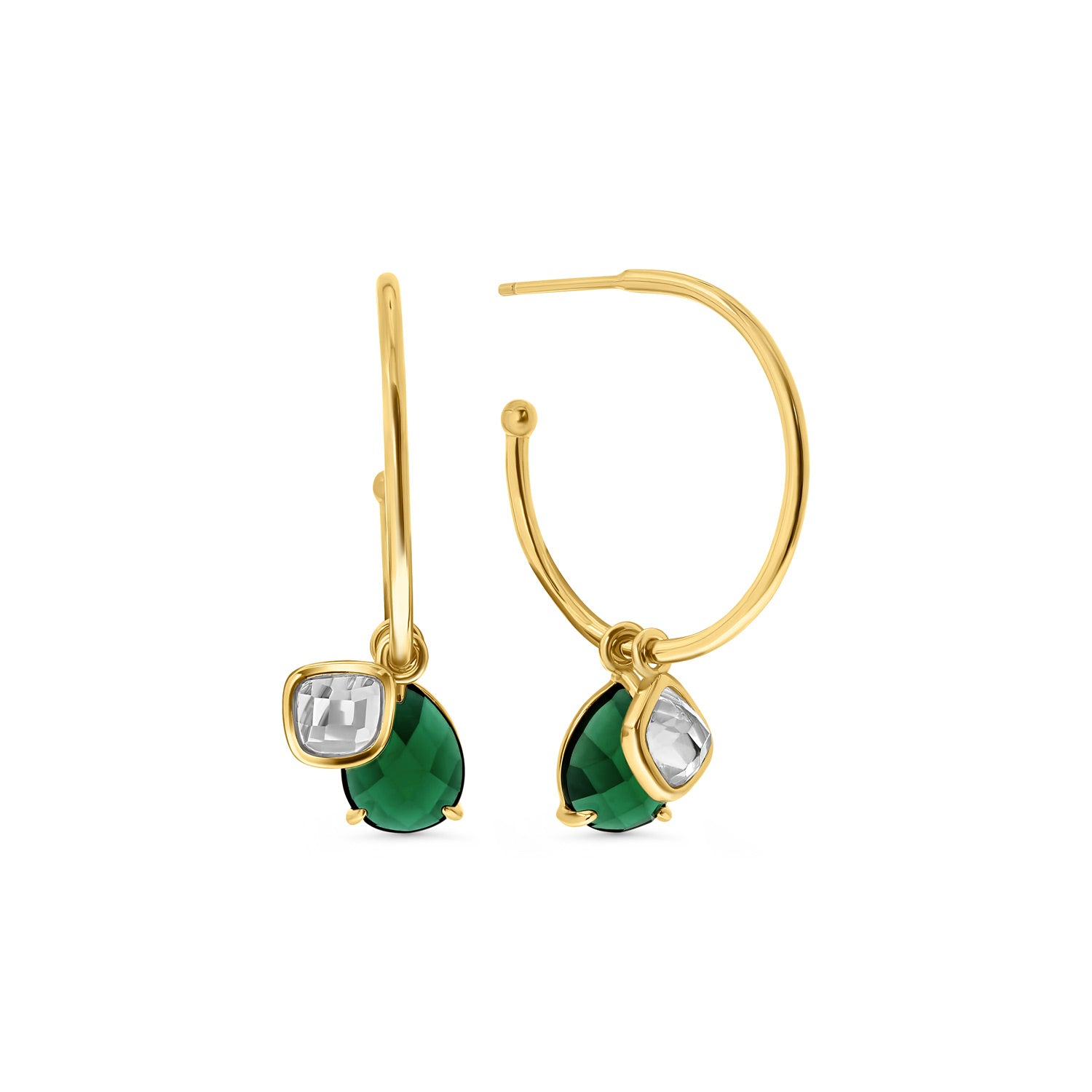 Acesti cercei frumosi Salvatore Plata sunt lucrati din argint 925 si sunt placati cu aur. Acestea prezinta frumoase cristale taiate verzi si subtile de liliac. Cerceii au un diametru de 2,5 cm. Amesteca si potriveste bijuteriile pentru a-ti crea propriul look!