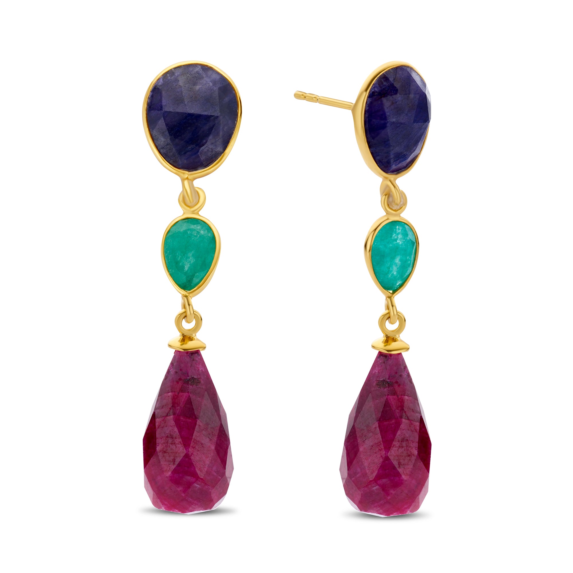 Acesti cercei eleganti Salvatore sunt o adevarata atractie a ochiului, realizati din argint sterling si placati cu aur galben luxos pentru o stralucire si durabilitate frumoasa. Cerceii sunt impodobiti cu o combinatie uluitoare de pietre pretioase: un safir albastru de 10x12 mm, un smarald verde de 7x9 mm si un rubin rosu in forma de lacrima de 10x22 mm. Safirul albastru, cu culoarea sa profunda si regala, simbolizeaza intelepciunea, loialitatea si nobletea. Aceasta piatra este adesea asociata cu claritatea si acuitatea mentala. Smaraldul verde reprezinta natura, fertilitatea si dragostea si este o piatra pretioasa puternica care promoveaza echilibrul emotional si armonia. In cele din urma, rubinul rosu, cu stralucirea sa de foc, reprezinta pasiunea, dragostea si energia, adaugand o dimensiune suplimentara frumusetii sale datorita formei de lacrima.