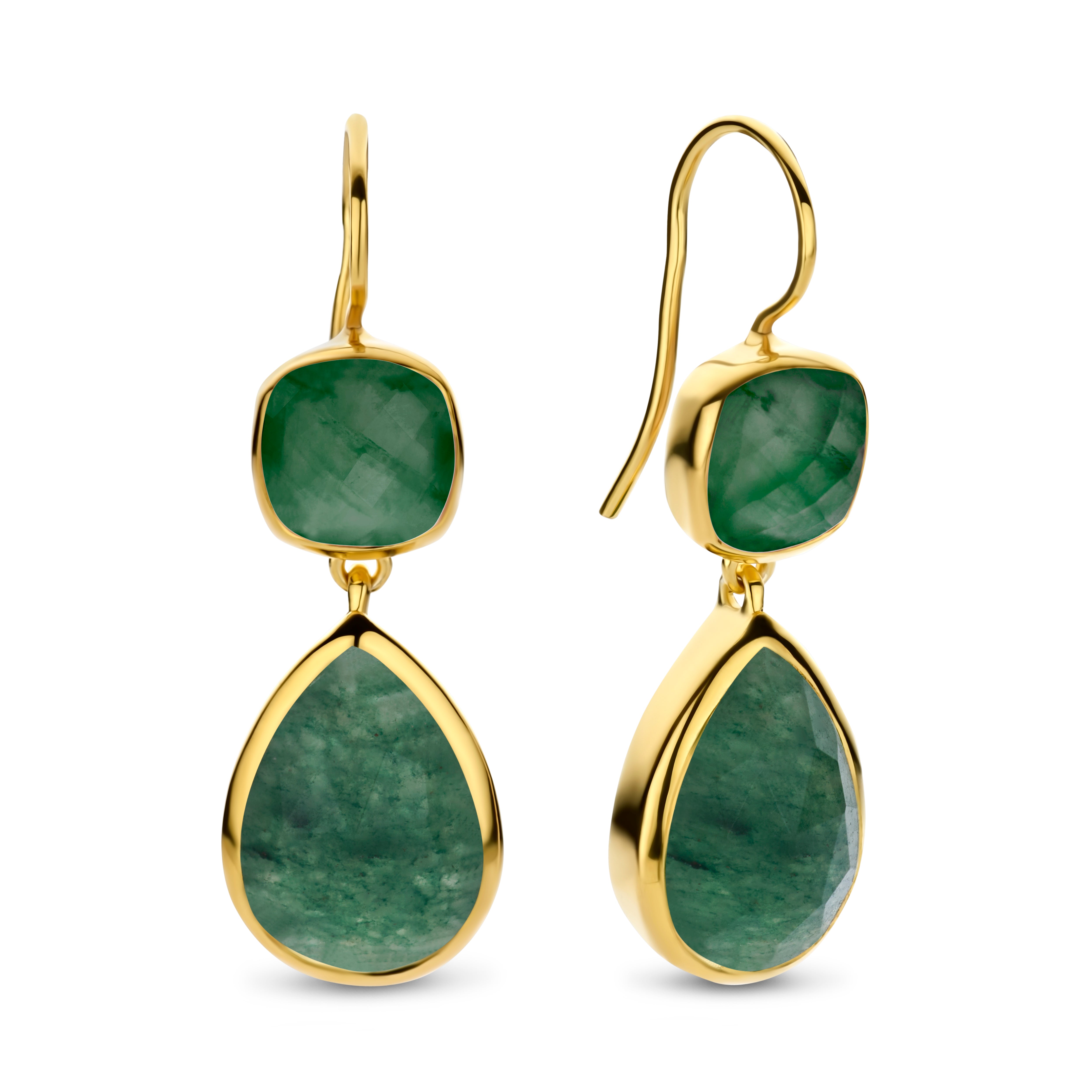 Lasa-te sa stralucesti cu acesti cercei eleganti Salvatore, realizati din argint sterling placat cu aur galben. Cerceii sunt frumos impodobiti cu o piatra patrata de cuart verde de 8 mm, adaugand o nota rafinata si jucausa look-ului tau. Ele sunt, de asemenea, impodobite cu doua smaralde verzi incantatoare de 10x14 mm in forma de para, care stralucesc cu o culoare vibranta si un aspect luxos. Combinatia acestor pietre creeaza un echilibru armonios intre joaca si eleganta, facand acesti cercei perfecti atat pentru tinutele de zi cu zi, cat si pentru ocazii speciale.