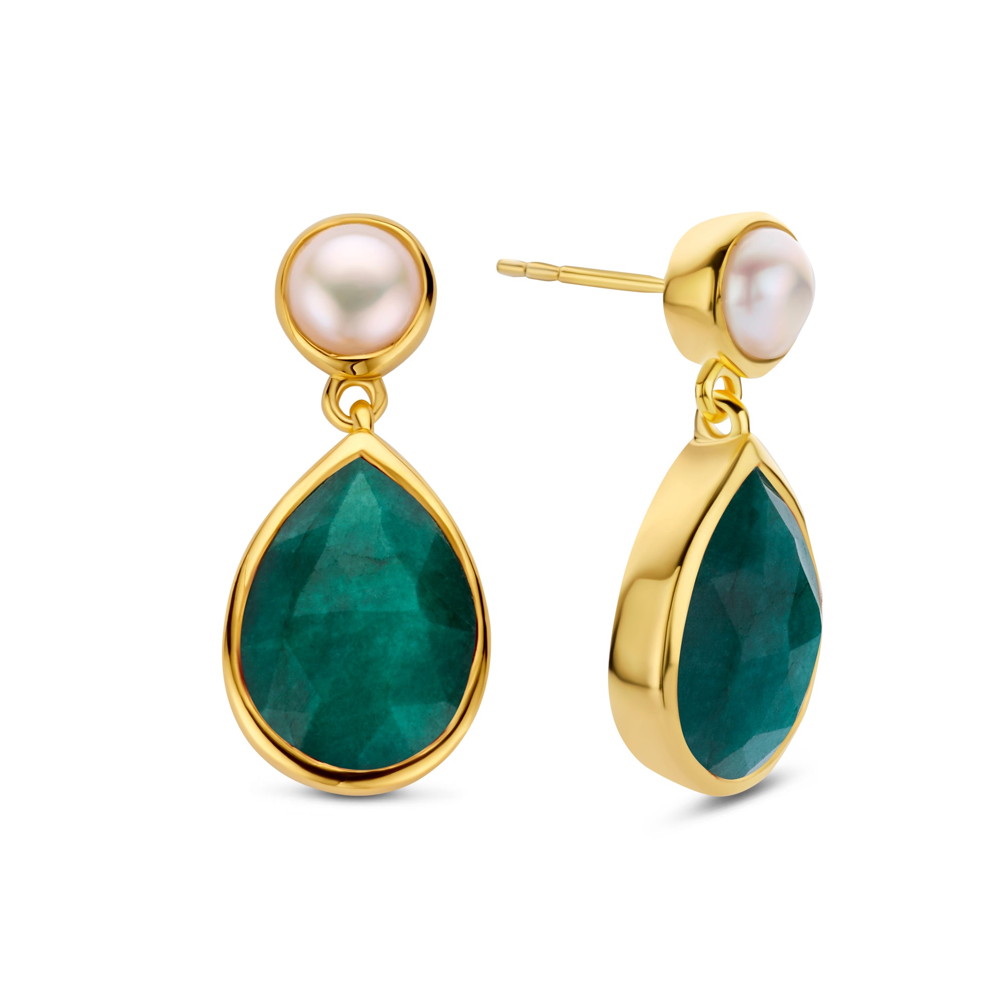 Acesti cercei eleganti Salvatore sunt realizati din argint sterling si placati cu aur. Pandantivele au un smarald verde orbitor in forma de para (10x14 mm), creand un aspect rafinat. O perla de 3 mm adauga o nota clasica. Acesti cercei combina luxul si rafinamentul, perfecti pentru orice ocazie.