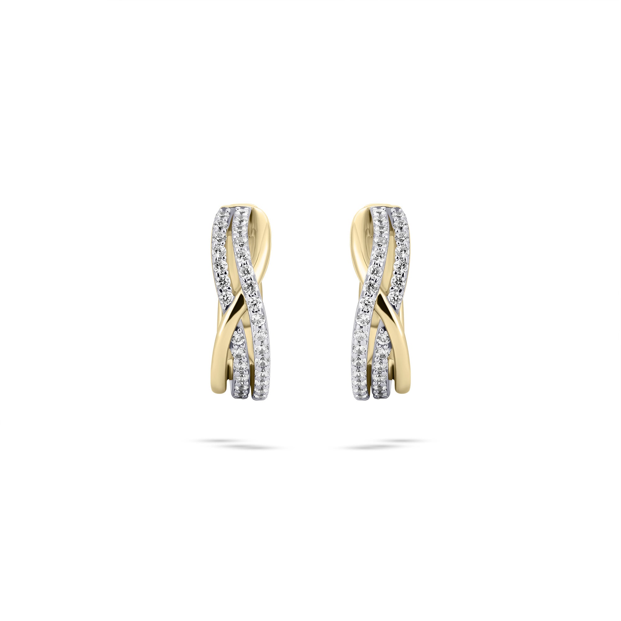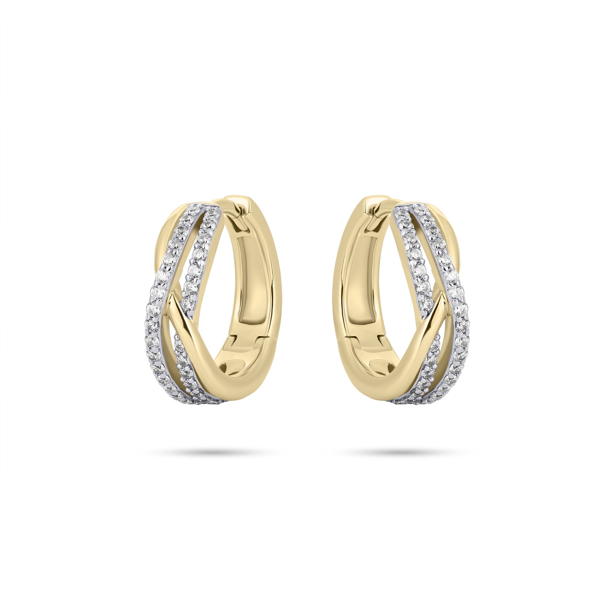 Acesti cercei frumosi Elena au doua benzi incrucisate, delicat insarite cu zirconiu cubic stralucitor. Fabricate din argint sterling si placare cu nuante aurii, emana lux. O declaratie eleganta pentru orice ocazie.