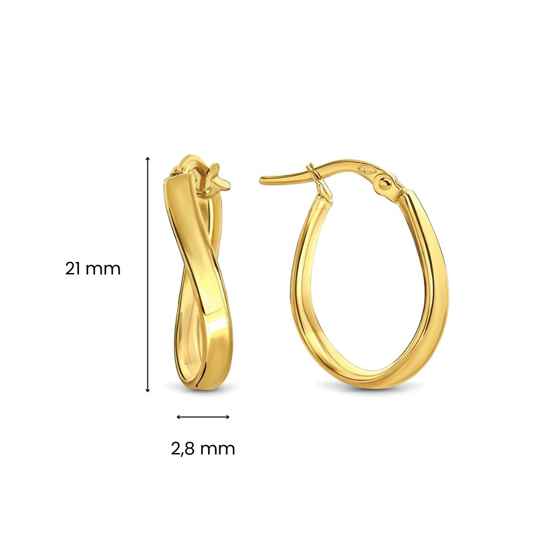 Cercei din aur alb de 14 karate din colectia Redore. Au 20 mm lungime, 2,7 mm latime si 1,6 mm grosime.