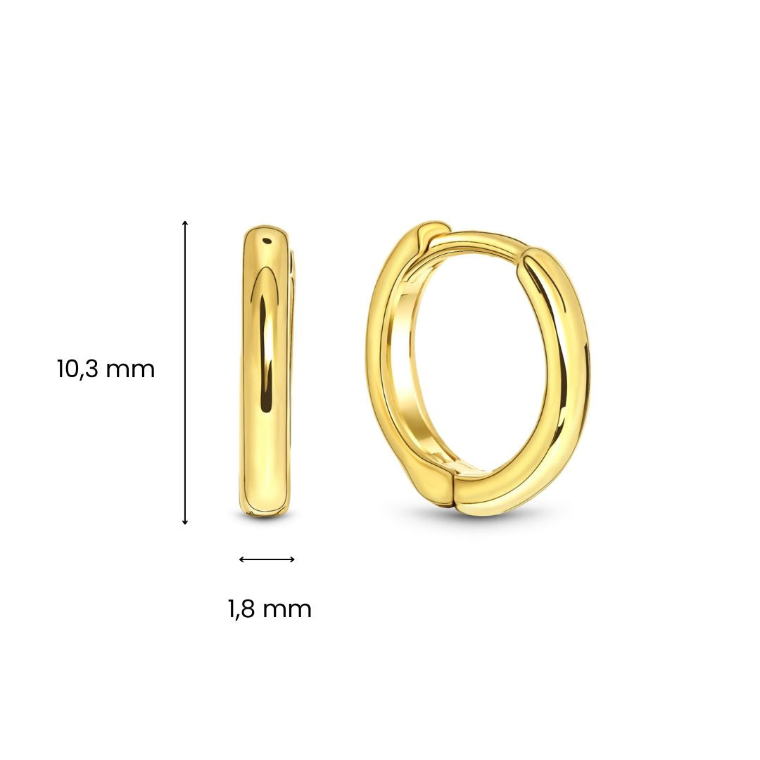 Cercei din aur galben de 14 karate din colectia Redore. Cerceii au un diametru de 10 mm.