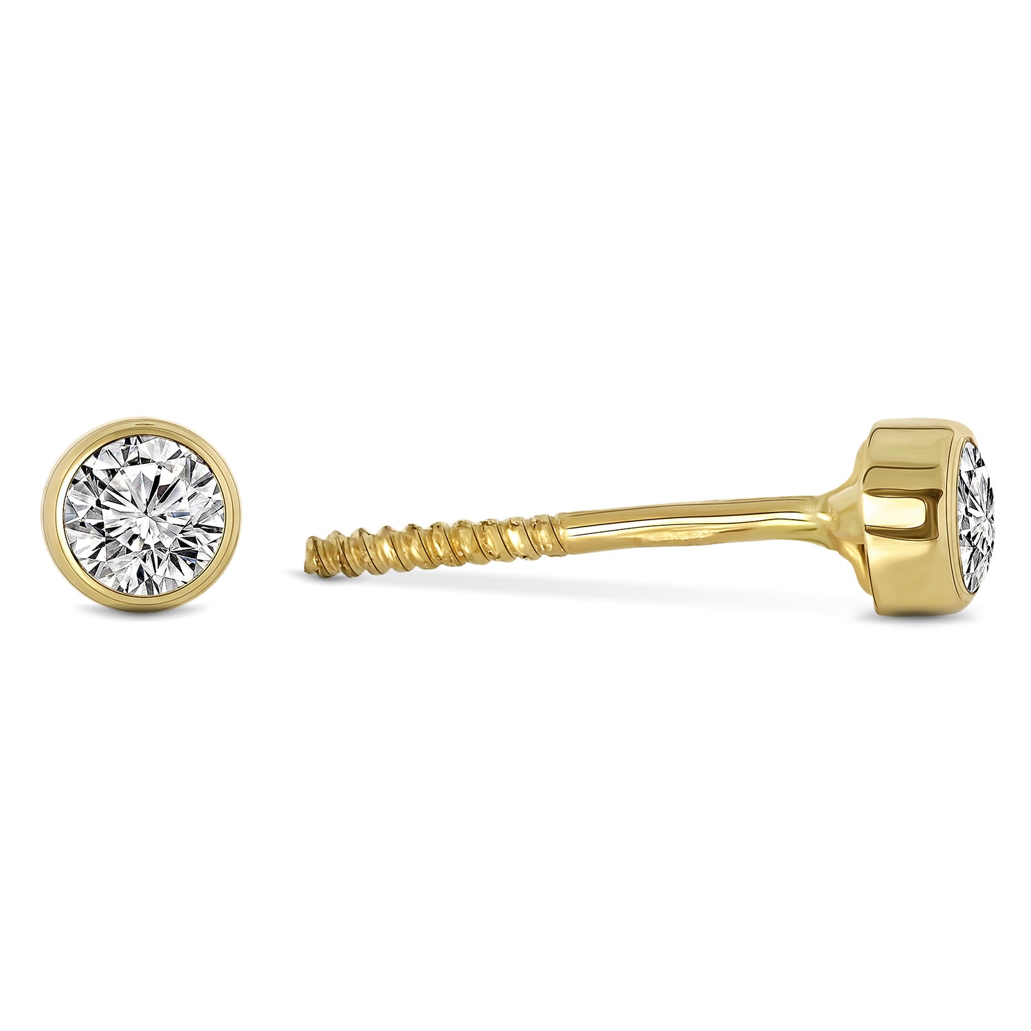 Cercei tip stift din aur galben de 14 karate din colectia By Nikki. Aceste stifturi rotunde sunt ambele fixate cu zirconiu.