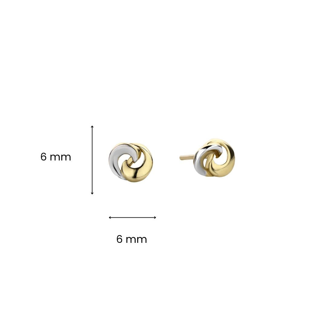 Cercei stud bicolor din aur galben de 14 carate din colectia Twinline.