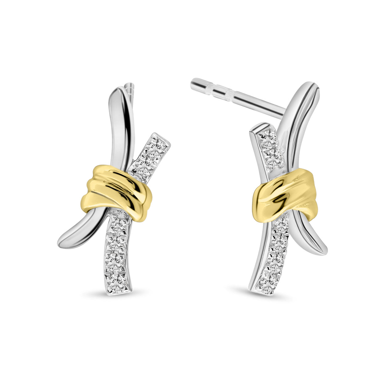 Cercei loveknot bicolore cu diamante din colectia Diamonds by Siebel. Realizati din aur alb si galben de 14 karate, acesti cercei au un nod de dragoste fermecator. De asemenea, sunt sertate cu 12 diamante albe uimitoare taiate stralucitor. Asociati acesti cercei cu inelul si colierul asortate din colectie pentru a va completa look-ul.