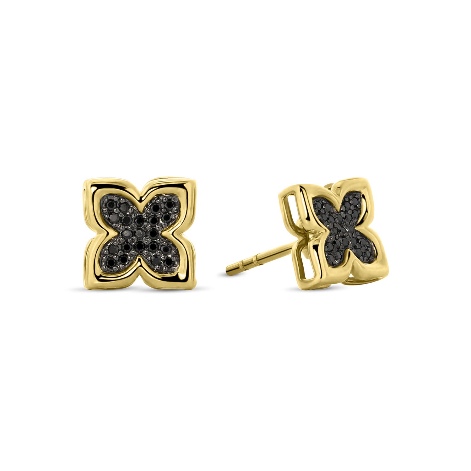 Cercei tip trifoi din aur galben cu diamante negre din colectia Diamonds by Siebel. Confectionati din aur galben de 14 karate, acesti cercei sunt impodobiti cu 42 de diamante uimitoare negre taiate stralucitor. Asociati-le cu colierul asortat pentru a va completa look-ul.