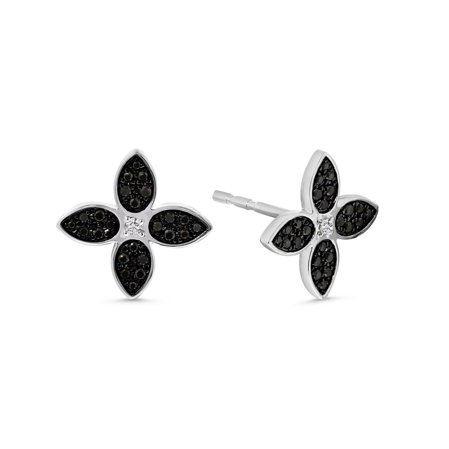 Cercei tip stift din aur alb din colectia Diamonds by Siebel. Realizati din aur alb de 14 karate si impodobiti cu diamante negre stralucitoare, acesti cercei au forma unui trifoi cu patru foi. Asociati acesti cercei cu alte bijuterii din colectie.