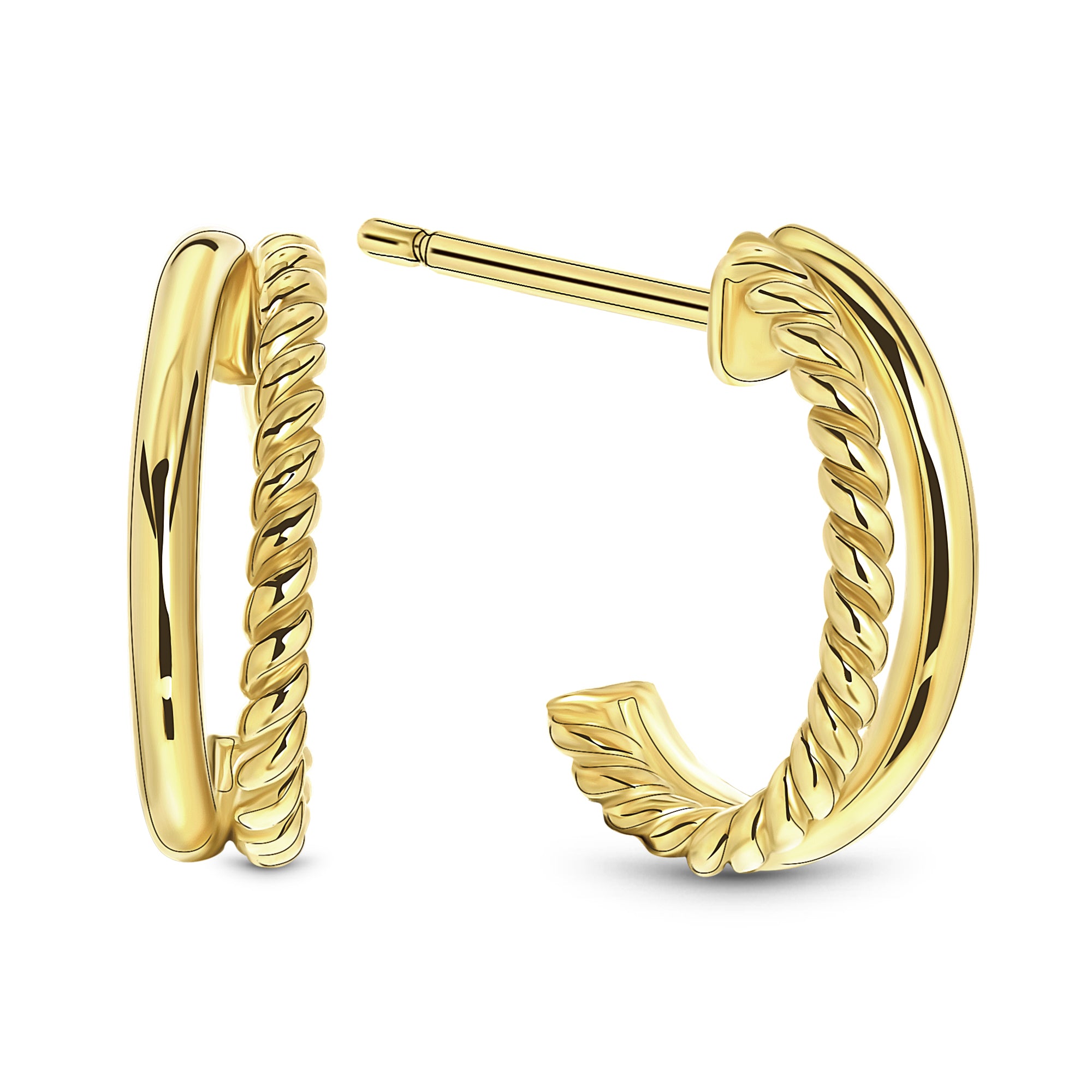 Cercei din aur galben de 14 karate din colectia Valentina. Cerceii par a fi din doua parti: o jumatate de cerc fara relief si o jumatate de cerc cu relief.