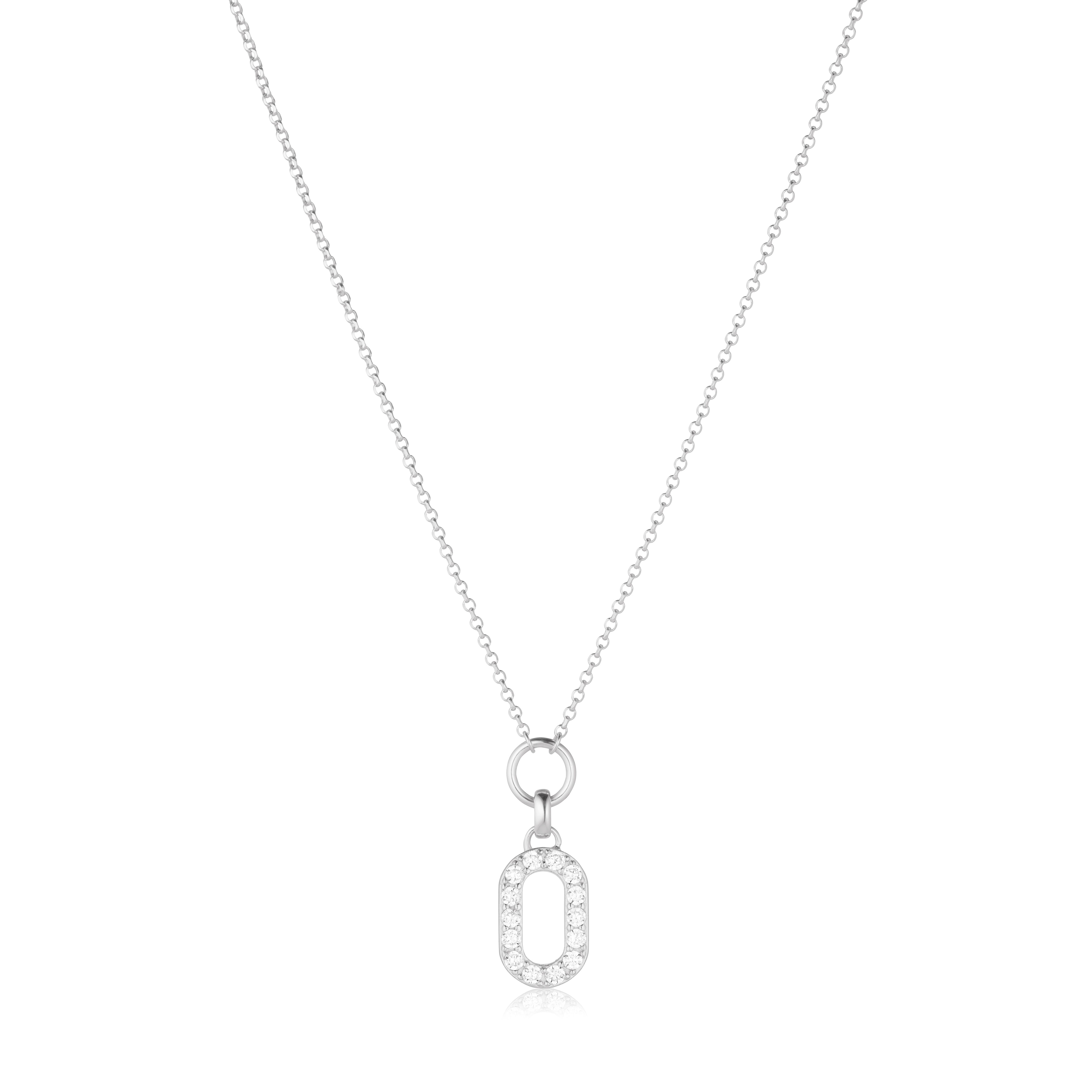 Colier realizat din argint 925 cu rodiu, finisaj lustruit si setat manual cu zirconiu alb fatetat. Dimensiuni colier: lungime 22 mm, latime 8 mm, grosime 1,3 mm, lungime lant pana la 45 cm