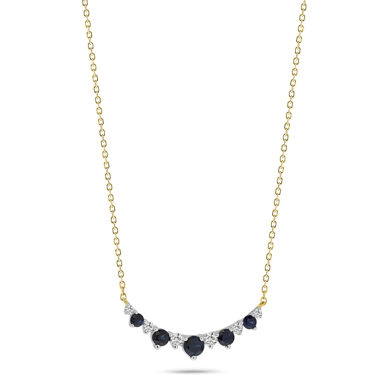 Colier din aur galben cu diamante din colectia Gems. Fabricat din aur galben de 14 karate, colierul este sertat cu 11 diamante si safire stralucitoare. Asociati-l cu alte bijuterii din colectie pentru a va completa look-ul.