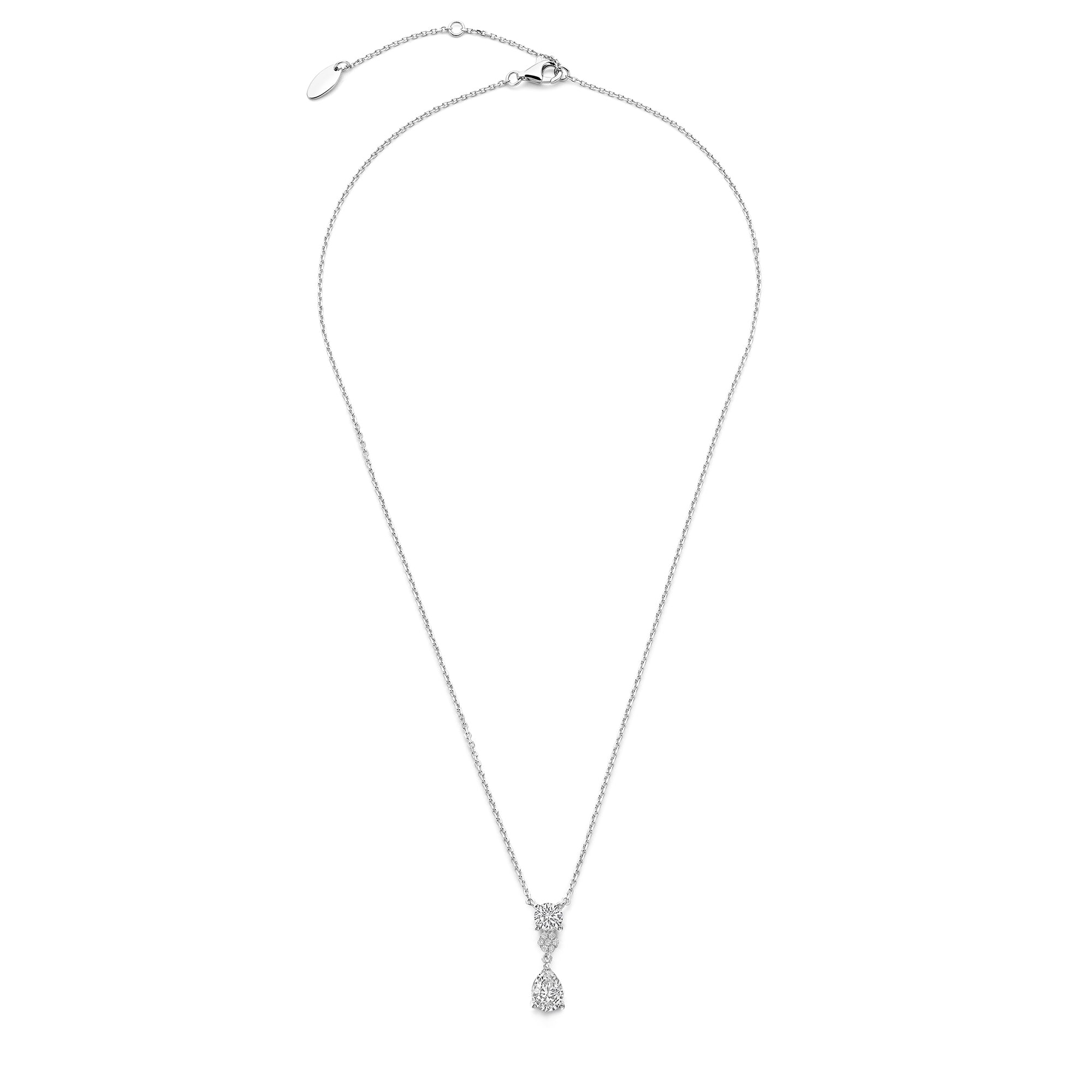 Colier Trendy Chic, realizat din argint 925 cu finisaj rodiu, are un pandantiv delicat in forma de cerc stralucitor cu zirconiu cubic taiat in pere. Pandantivul adauga designului o eleganta atemporala. Lantul are 45 cm lungime, in timp ce pandantivul are 2,5 cm, dand piesei un aspect subtil, dar izbitor. Perfect atat pentru uzura de zi cu zi, cat si pentru ocazii speciale.