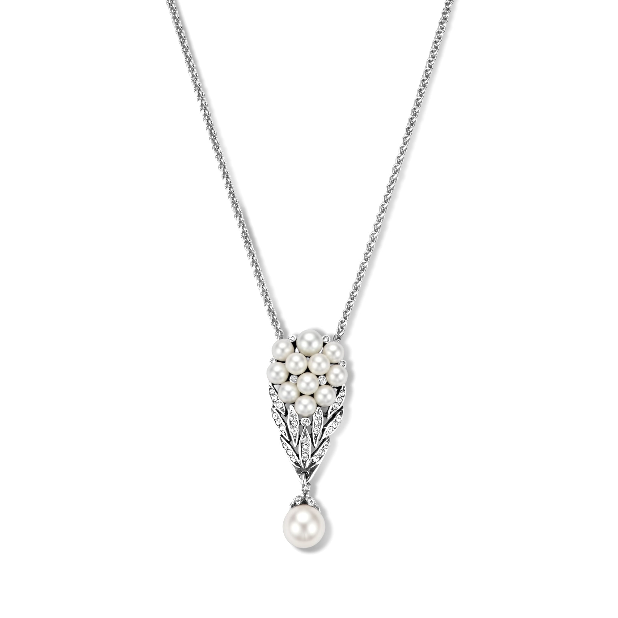 Acest superb colier Retro Classics face parte din Colectia Timeless. Fabricat din argint sterling 925, are un aspect clasic. Pandantivul prezinta o perla sintetica si cristale Swarovski stralucitoare. Colierul are 39,5 cm lungime si 3,5 cm latime. Acest colier la moda este atemporal!