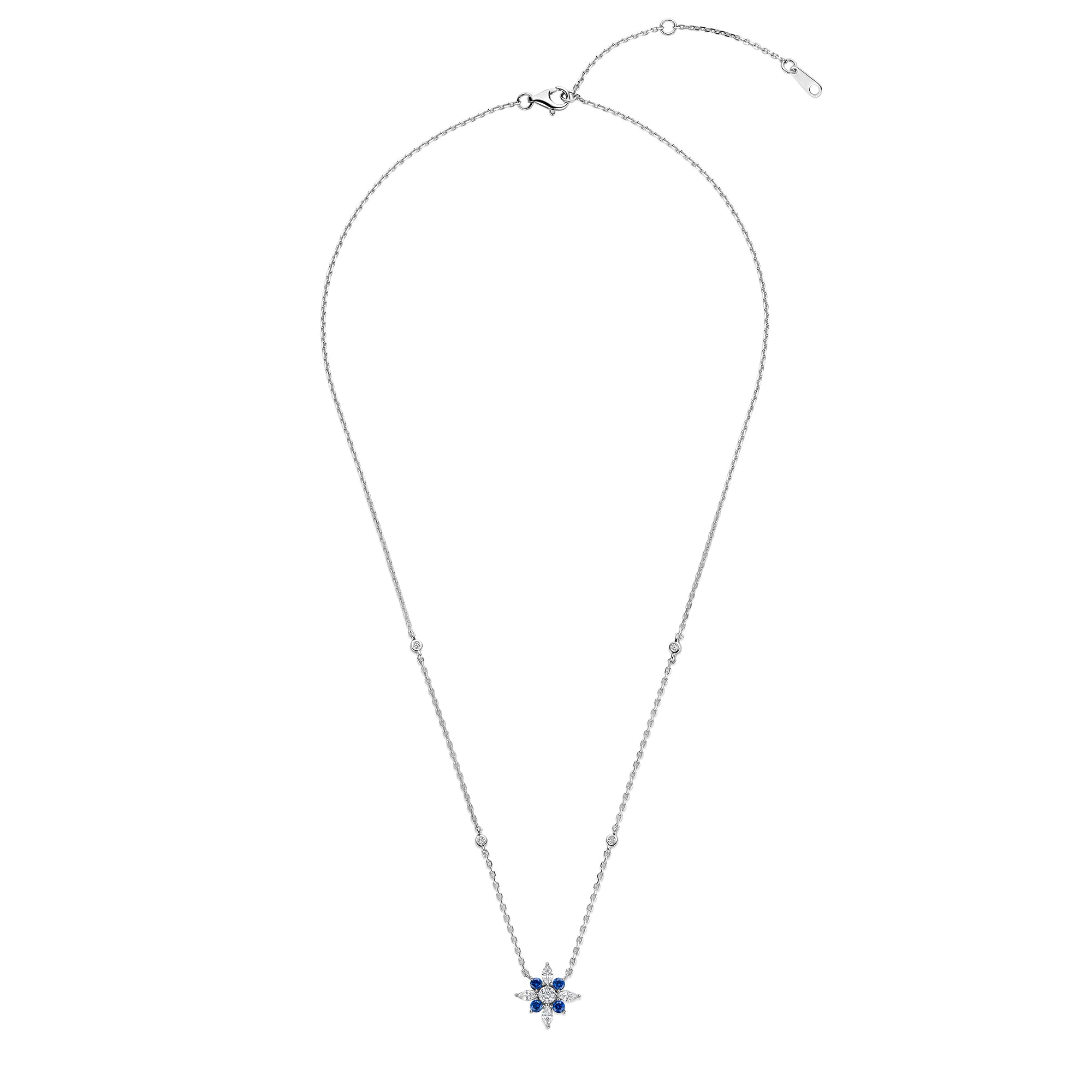 Colierul Audrey Collection este o alegere eleganta, realizat din argint 925 si placat cu rodiu pentru o stralucire de durata. Designul prezinta zirconiu cubic albastru si alb intr-o forma de fulg de zapada, creand un aspect izbitor si rafinat. Lantul de 45 cm are o veriga de ancorare, adaugand rezistenta si estetica. Acest colier se asorteaza perfect cu cerceii asortati, creand un ansamblu armonios si stilat.