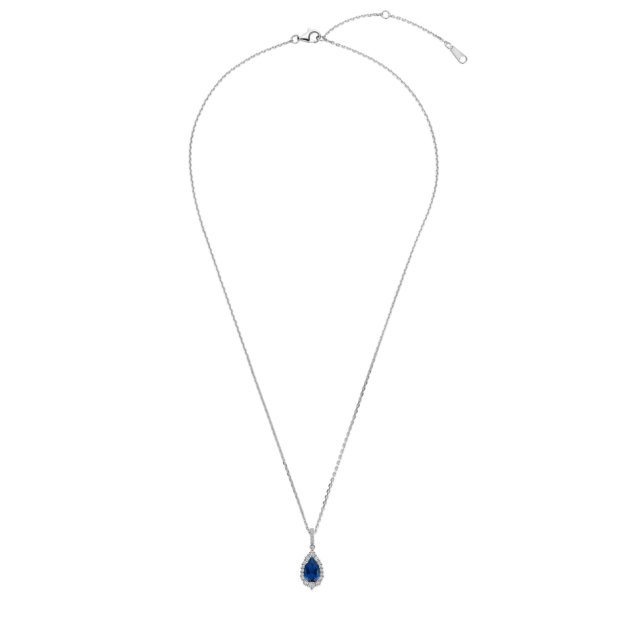 Colierul din The Audrey Collection are o piatra de zirconiu albastru in forma de para, inconjurata de pietre de zirconiu alb. Acest colier elegant este realizat din argint 925 si placat cu rodiu pentru o stralucire de durata. Cu o lungime de 45 cm si avand o legatura de ancorare, acest colier ofera un aspect rafinat care se asorteaza perfect cu cerceii si inelul din aceeasi colectie.