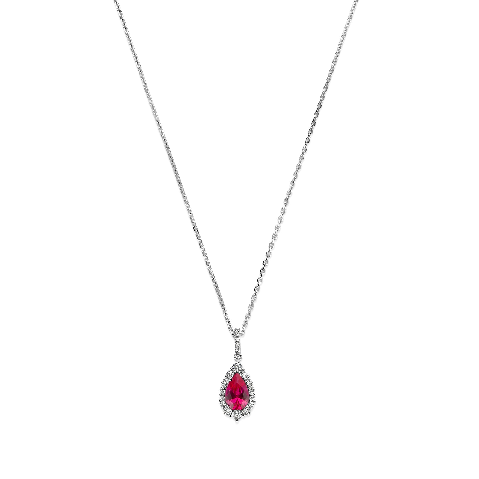 Colierul din The Audrey Collection are o piatra de zirconiu rosu in forma de para, inconjurata de pietre de zirconiu alb. Acest colier elegant este realizat din argint 925 si placat cu rodiu pentru o stralucire de durata. Cu o lungime de 45 cm si avand o legatura de ancorare, acest colier ofera un aspect rafinat care se asorteaza perfect cu cerceii si inelul din aceeasi colectie.