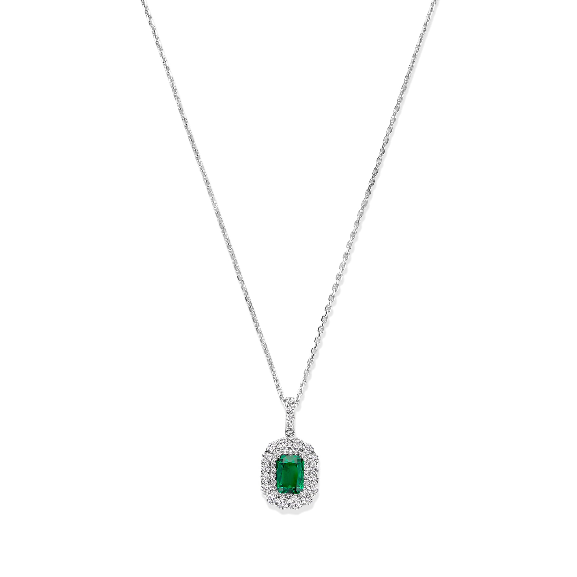 Va prezentam colierul elegant din colectia Audrey. Acest colier frumos are o piatra de zirconiu cubic verde in forma de radiant, inconjurata de zirconiu cubic alb stralucitor. Cu o lungime de 45 cm si cu o legatura de ancorare, acest colier este atat confortabil, cat si elegant. Fabricat din argint 925 si placat cu rodiu pentru un plus de stralucire si durabilitate, se asorteaza perfect cu cerceii din colectia Audrey. Adauga o nota de clasa tinutei tale cu acest colier uimitor.