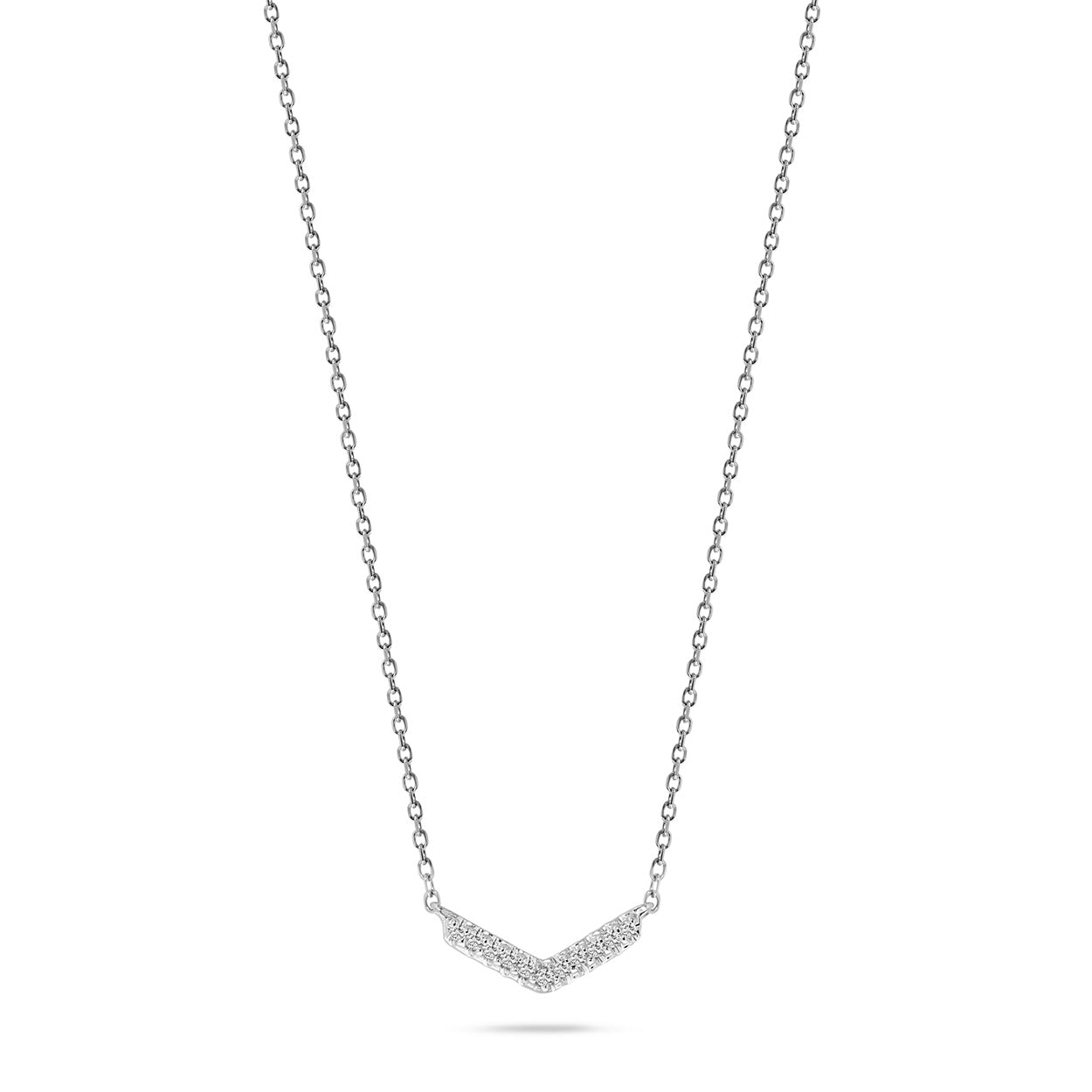Colier din aur alb din colectia Diamonds by Siebel. Fabricat din aur alb de 14 karate, colierul are forma de V si este sertat cu 11 diamante taiate stralucitor. Colierul are 45 cm lungime.