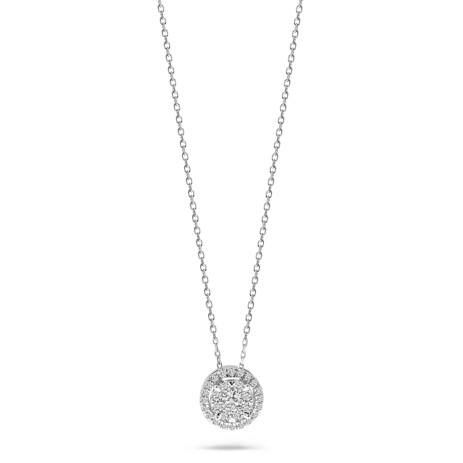 Colier din aur alb cu un grup de diamante cultivat in laborator din colectia Millennium. Fabricat din aur alb de 14 karate, colierul prezinta un grup de diamante frumoase cultivate in laborator. Colierul are 45 cm lungime. Asociati-l cu bijuterii asortate din colectie pentru a completa aspectul.